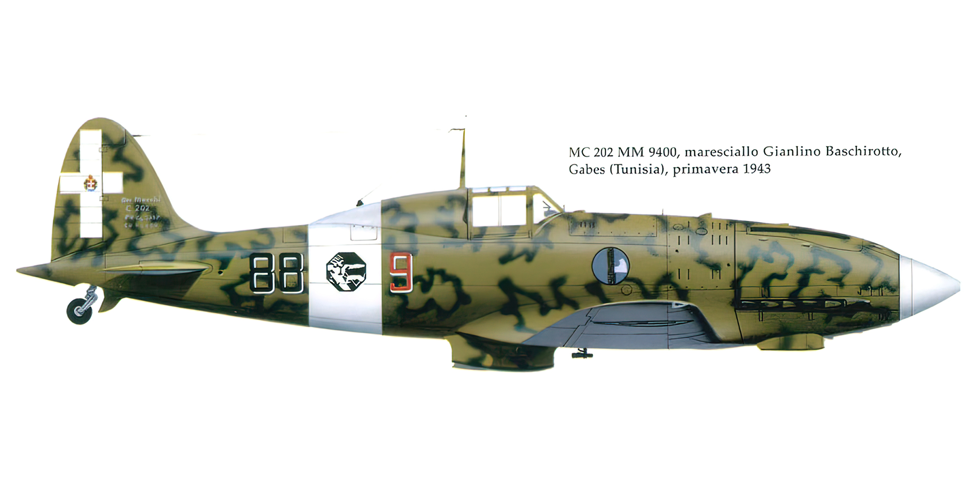 RA Macchi MC202 Folgore 1 Stormo 6 Gruppo 88 Sqa 88 9 Marisciallo Baschirotto MM9398 Tunisia 1943 0A