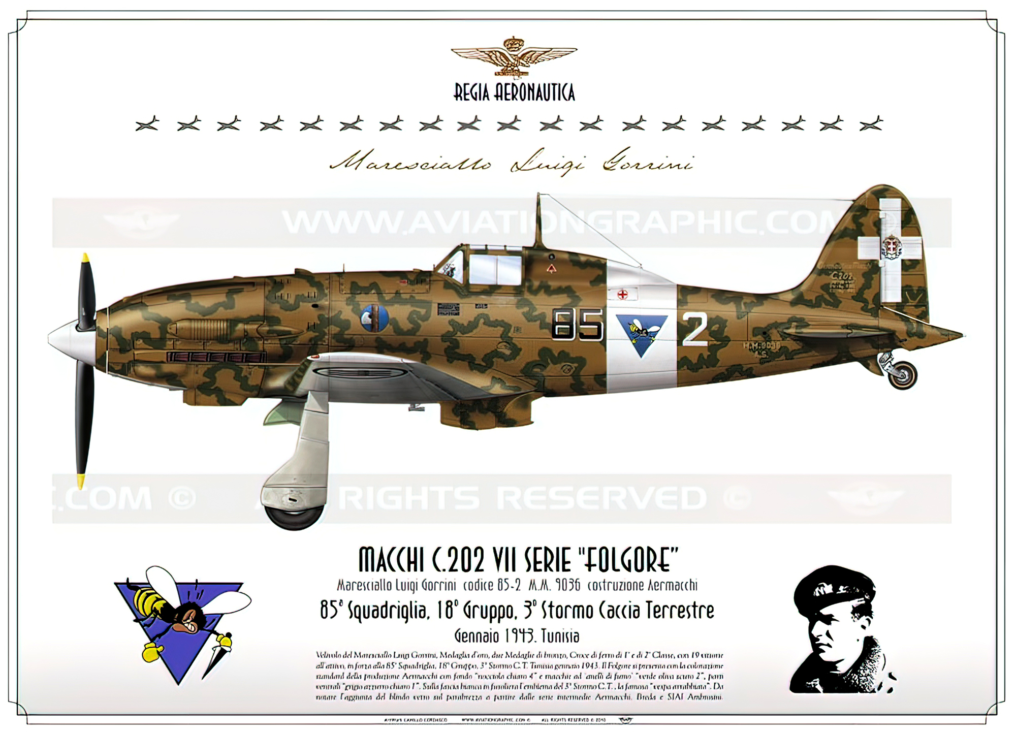 RA Macchi MC202 Folgore 3 Stormo 18 Gruppo CT 85Sqa 85 2 Luigi Gorrini Tunisia 1943 0B