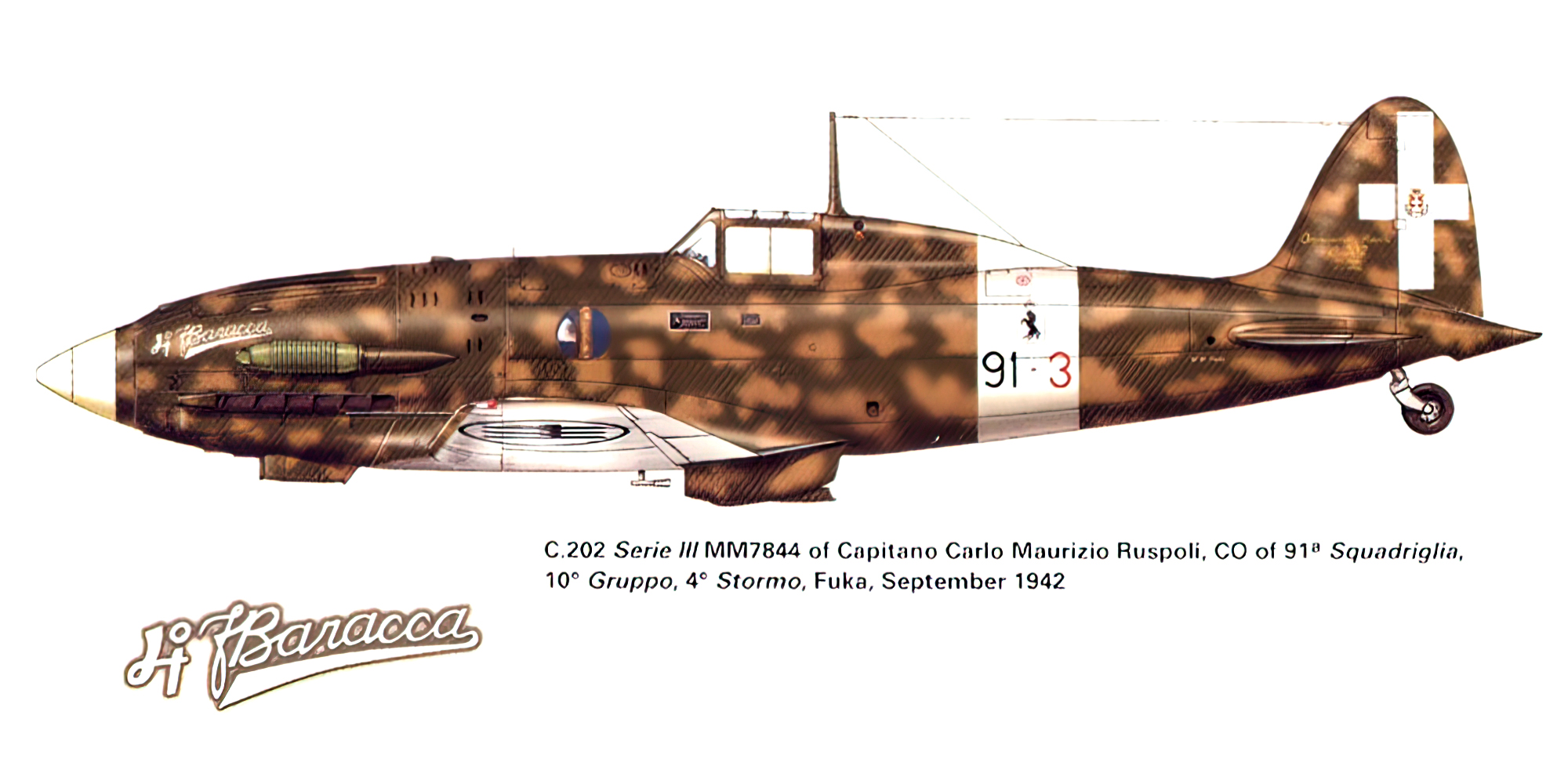 RA Regia Aeronautica Macchi MC202 Folgore 4 Stormo 10 Gruppo 91Sqa 91 3 Carlo Maurizio Ruspoli 1942 0C
