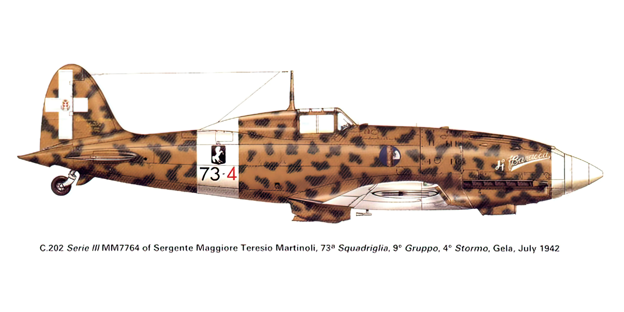 RA Regia Aeronautica Macchi MC202 Folgore 4 Stormo 9 Gruppo 73Sqa 73 4 Teresio Martinoli MM7764 Gela 1942 0A