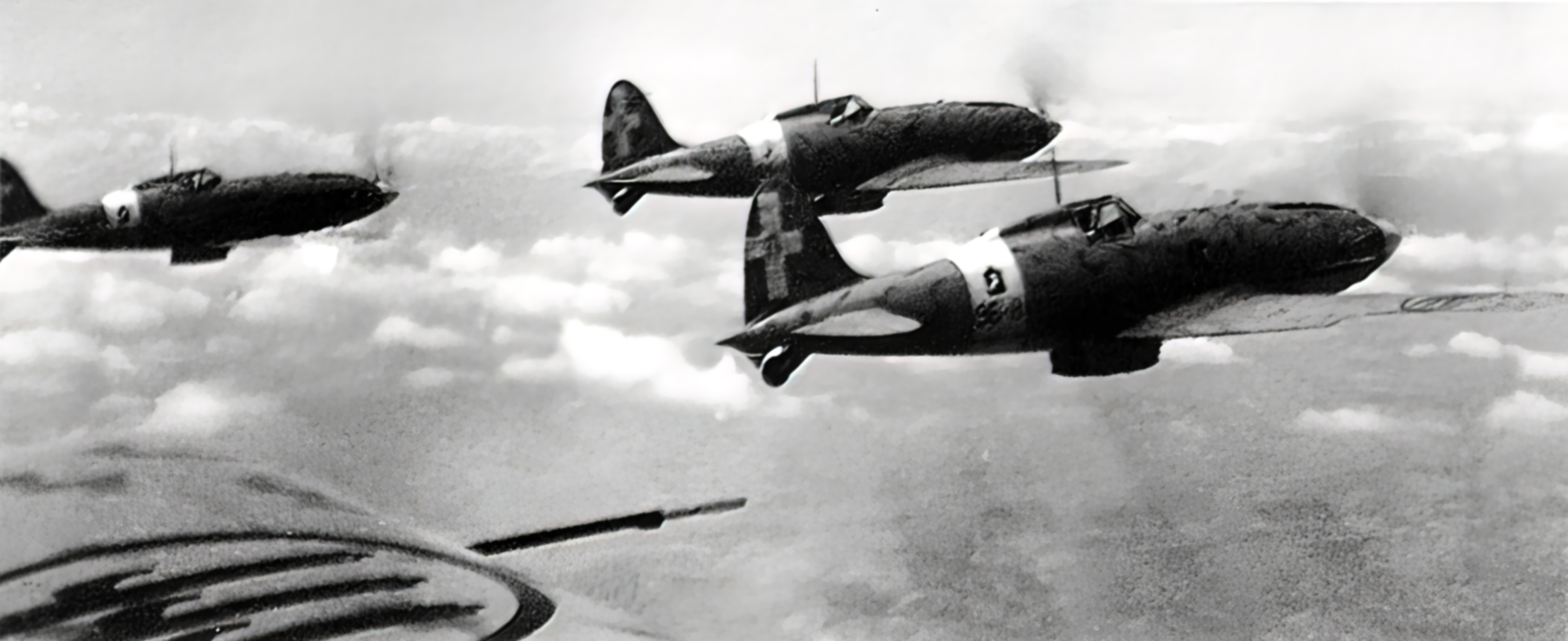 The Macchi C.202 Folgore (Italian 'thunderbolt') was a World War II fighter aircraft built by Macchi Aeronautica and operated mainly by the Regia Aeronautica (RA; Royal (Italian) Air Force). Macchi aircraft designed by Mario Castoldi received the 'C' letter in their model designation, hence the Folgore is referred to as the C.202 or MC.202. The C.202 was a development of the earlier C.200 Saetta, with an Italian-built version of the Daimler-Benz DB 601Aa engine and a redesigned, more streamlined fuselage.[2] Considered to be one of the best wartime fighters to serve in large numbers with the Regia Aeronautica,[3] the Folgore operated on all fronts in which Italy was involved.[4]