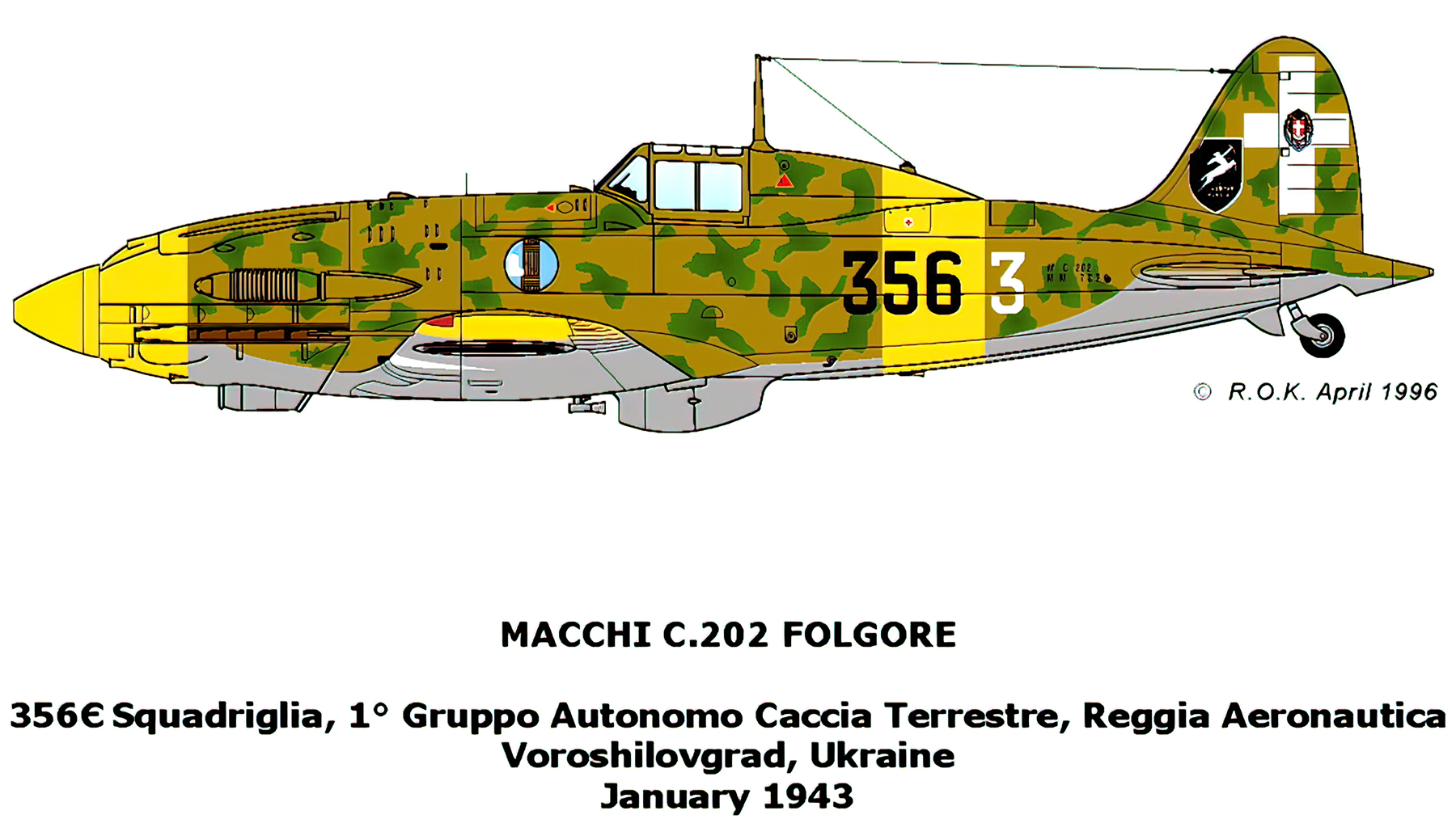 RA Regia Aeronautica Macchi MC202 Folgore 51 Stormo 21 Gruppo 356Sqa 356 3 Voroscilovgrad Russia 1943 0C