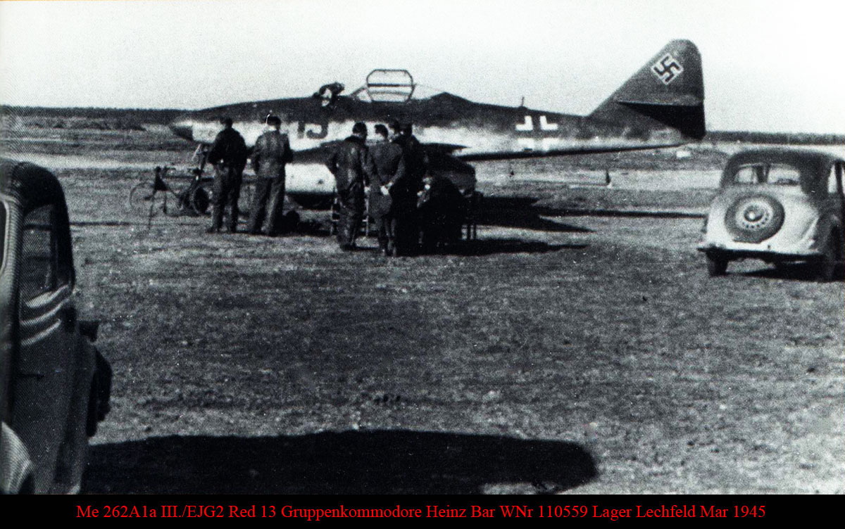 Messerschmitt Me 262A1a III.EJG2 Red 13 Gruppenkommodore Heinz Bar WNr 110559 Lager Lechfeld Mar 1945 01