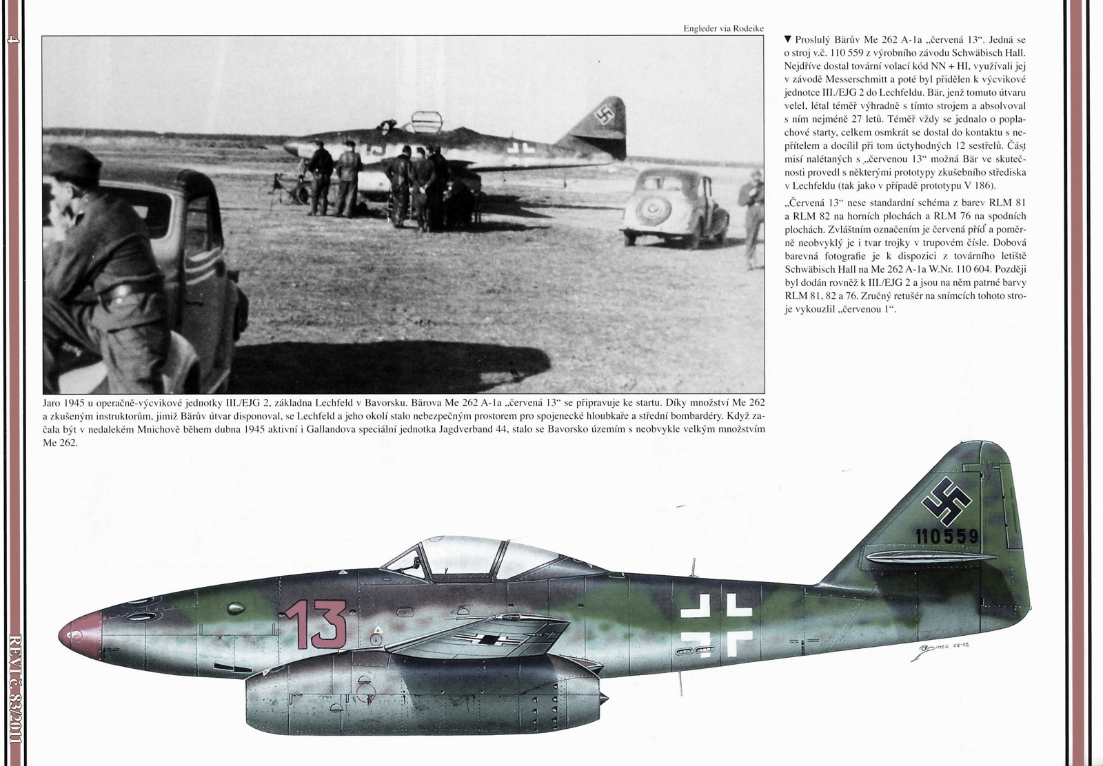 Messerschmitt Me 262A1a Schwalbe EJG2 Red 13 WNr 110559 Heinz Bar Lechfeld 1945 by Revi 83 0A