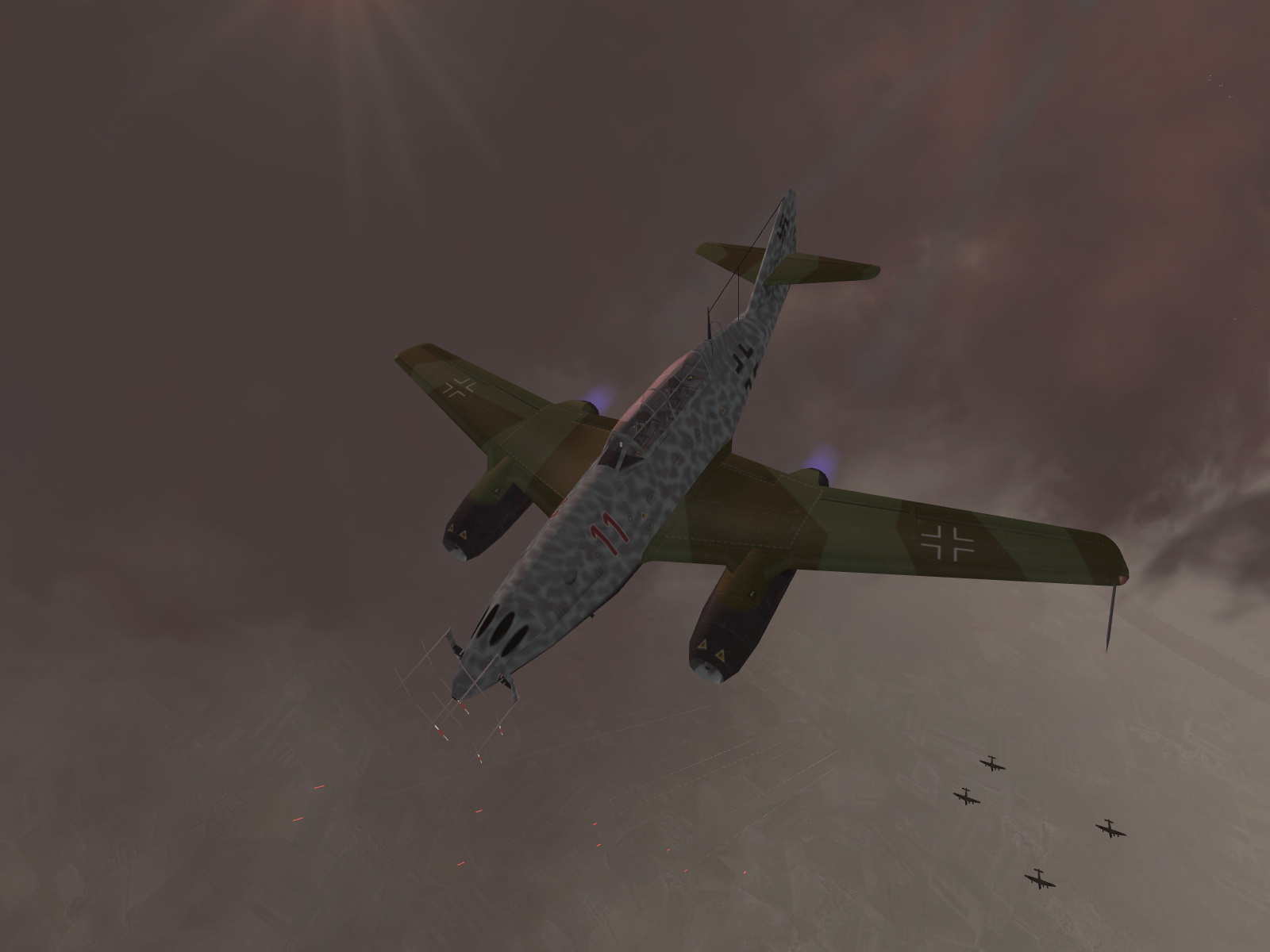 IL2 AS Me 262B 10.NJG11 Red 11 Schleswig Jagel attacking RAF bombers 1945-07