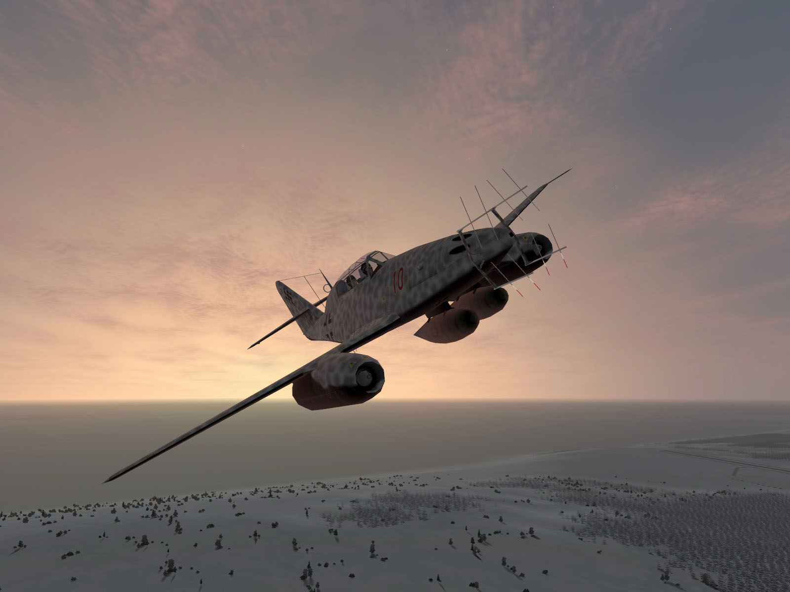 IL2 MH Me 262B 10.NJG11 red 10 low over the winter terrain V02