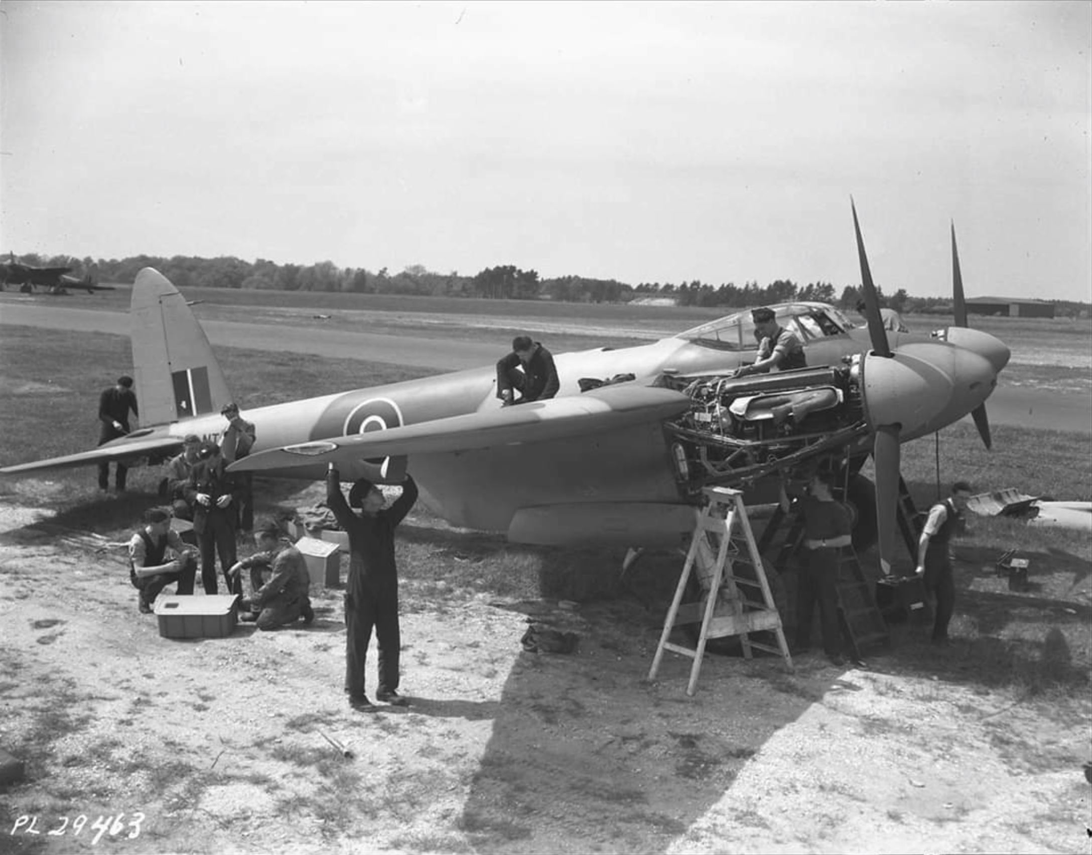 Officials in the British Air Ministry vehemently resisted building it, but from the day production finally began in 1941 until the war ended, the Royal Air Force never had enough Mosquitoes to perform the amazing variety of missions that air tacticians devised for this outstanding airplane. It excelled at day and night bombing from high or very low altitudes, long-range reconnaissance, air-to-air combat in daylight and darkness, and finding and striking distant targets at sea. No less than forty-two distinct versions of the D. H. 98 entered service. At extreme speeds, Mosquitoes carried heavy loads great distances because of two key design features: a lightweight, streamlined, wooden airframe propelled by powerful, reliable engines. The "Wooden Wonder" was constructed from Alaskan spruce, English ash, Canadian birch and fir, and Ecuadorian balsa glued and screwed together in new, innovative ways, and motivated by the world's finest reciprocating, liquid-cooled power plants, a pair of Rolls Royce Merlins. There has never been a more successful, combat-proven warplane made of wood.