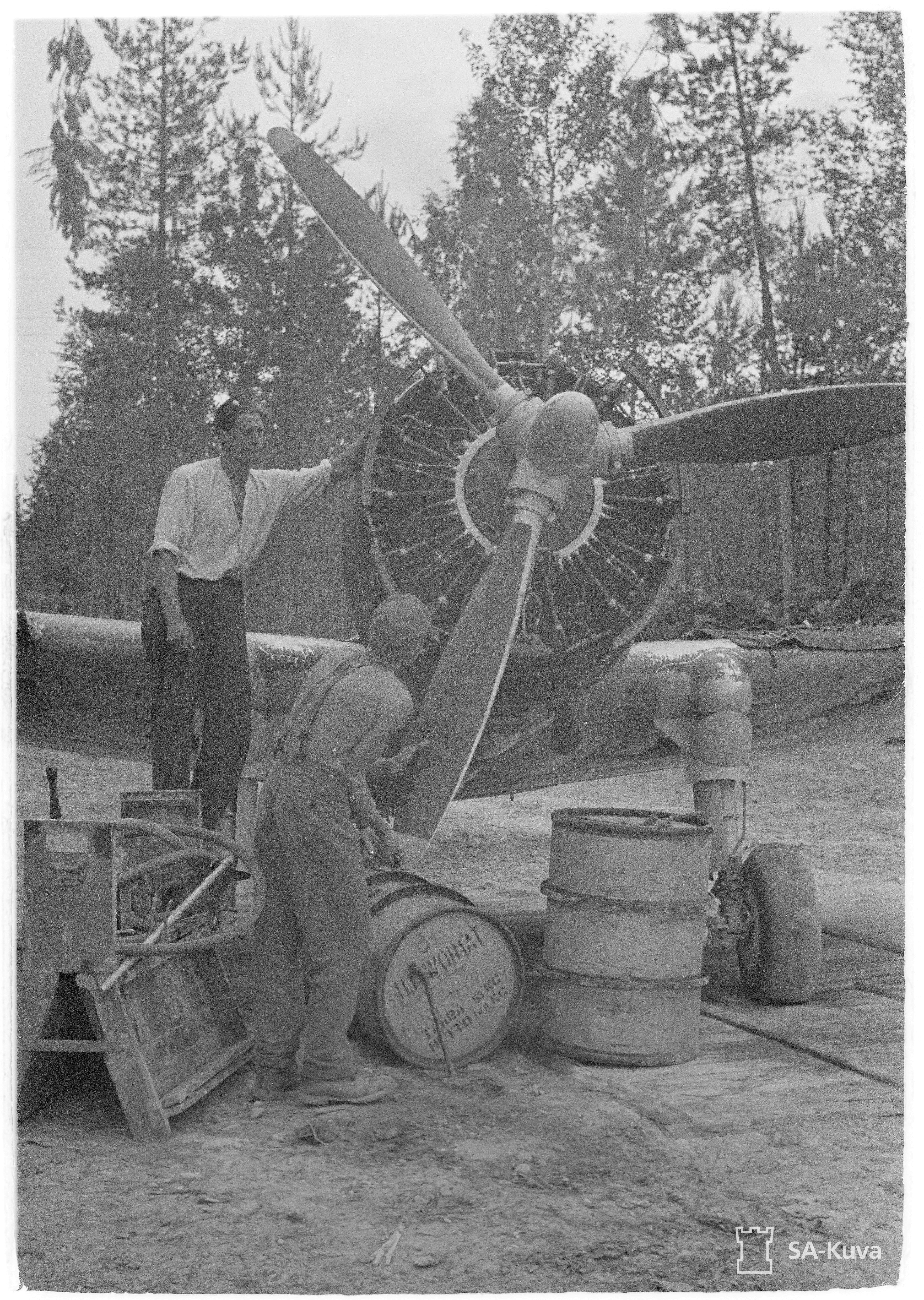 Curtiss Hawk 75A6 FAF under going flak damage repairs at Mensuvaara 9th Jul 1944 01