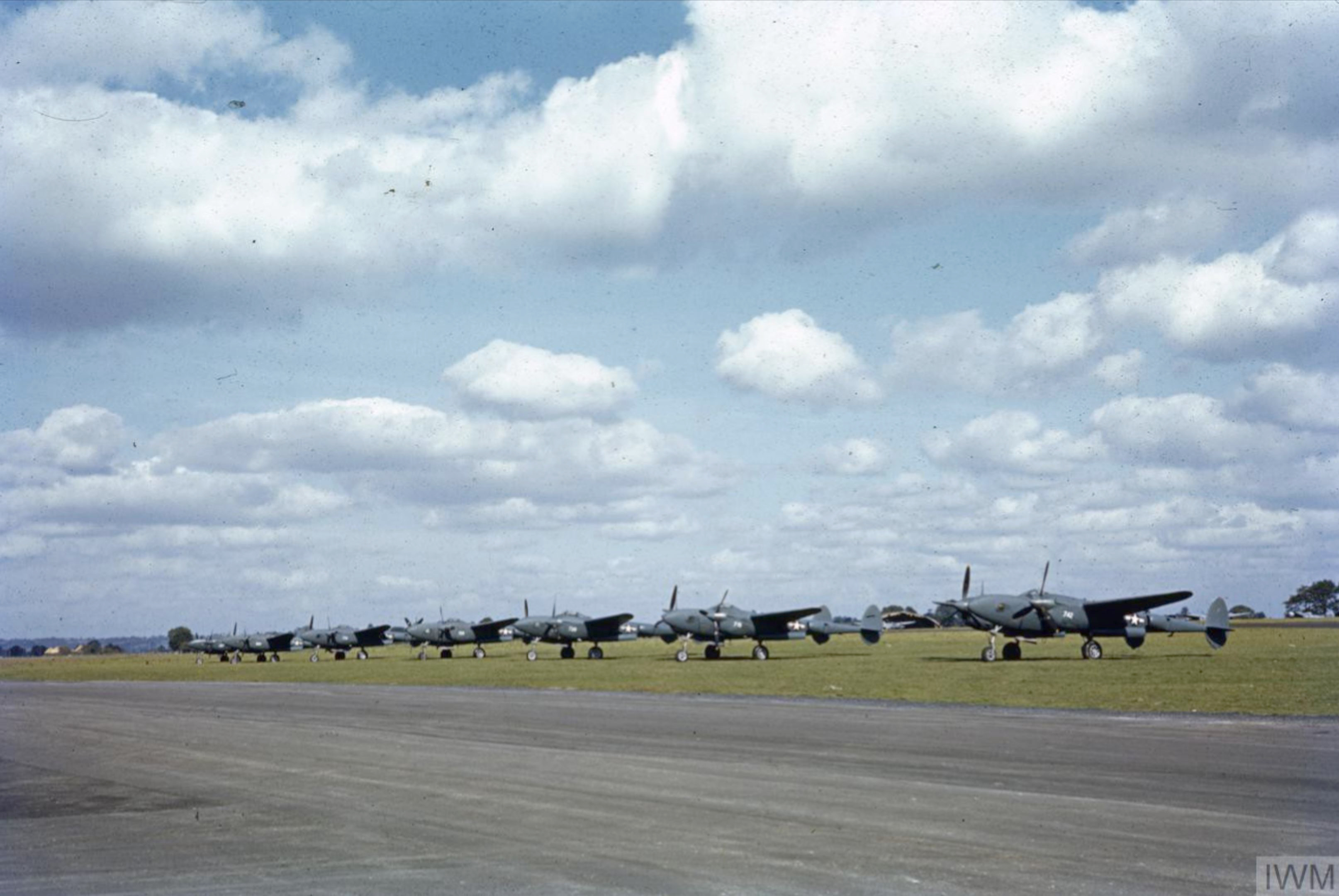 USAAF F 5 Lightning 8AF 7PG line up at Mount Farm IWM COL483