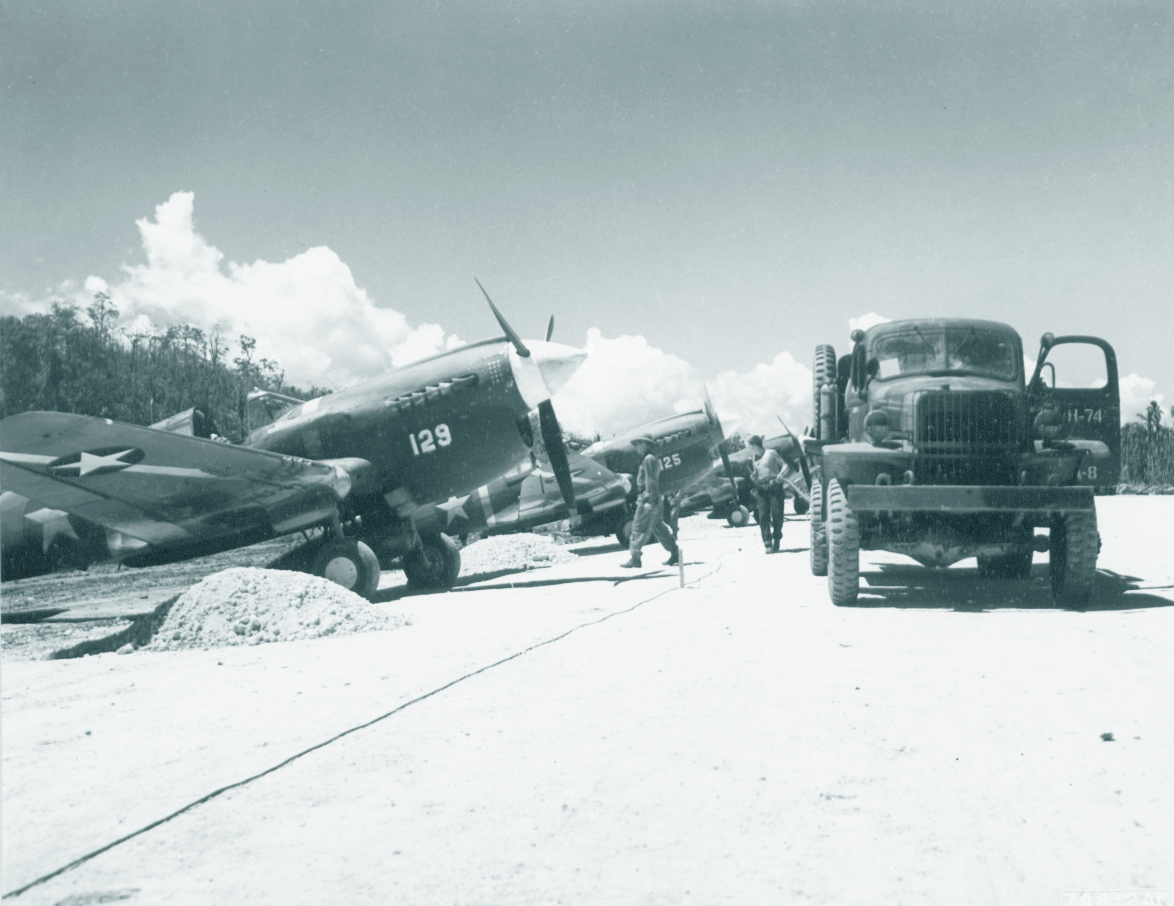 Curtiss P 40M Warhawk 18FG44FS White 129 Princess Pat II being refueled Munda New Georgia 14th Aug 1943 NA661