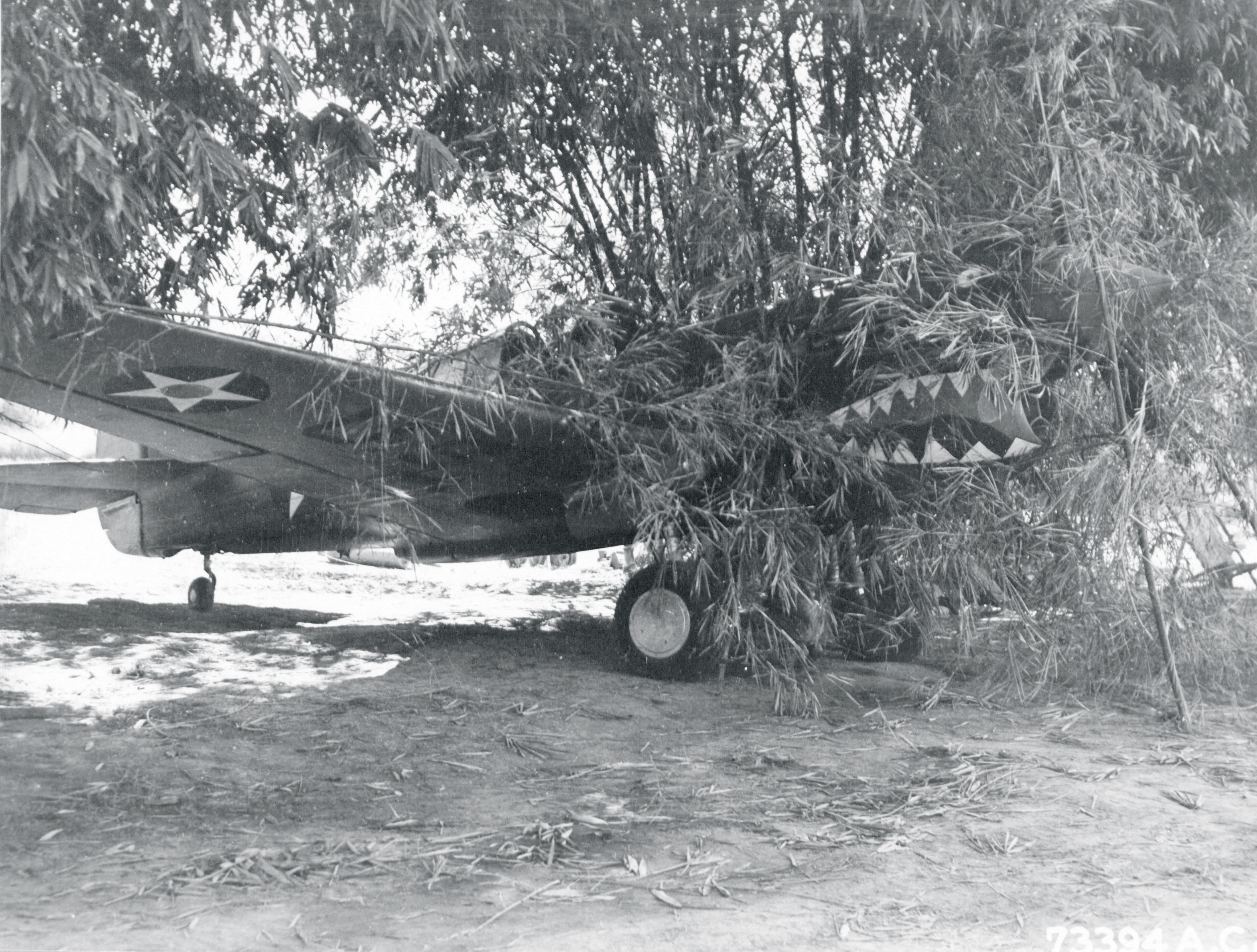 Curtiss P-40 Warhawk parked in natural camouflage on the dispersal field at Dinjan India NA501