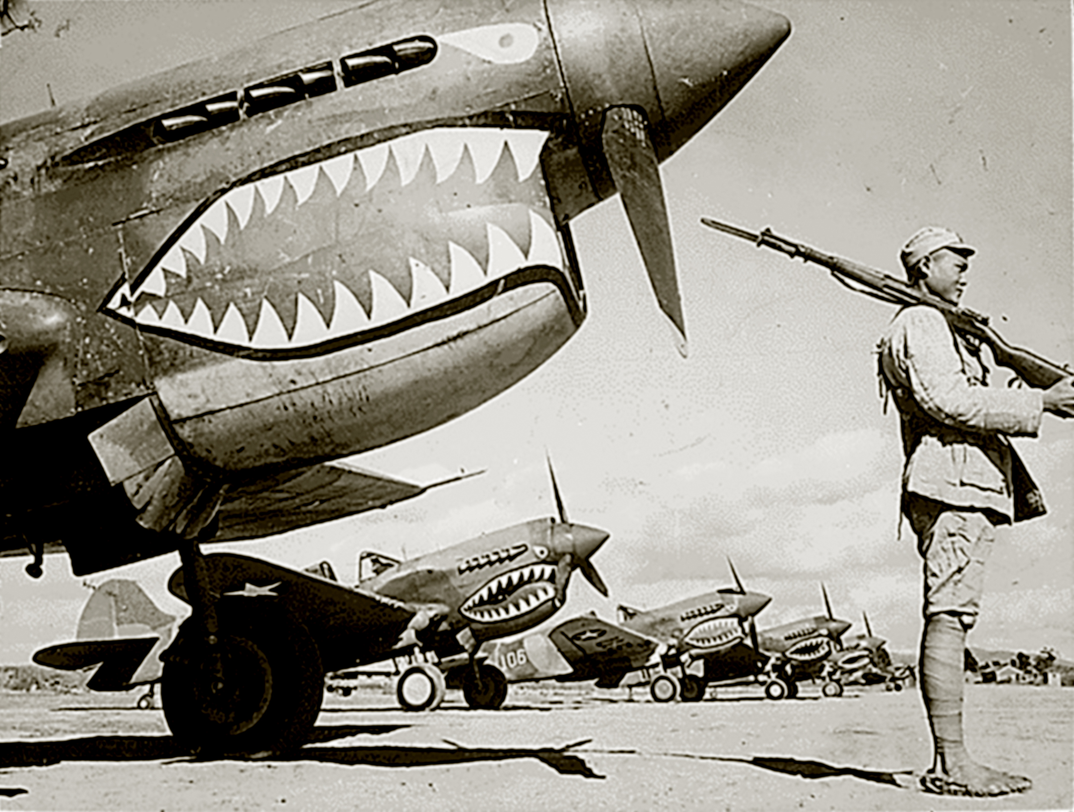 Curtiss P-40E Warhawk 23FG76FS White 106 John E Petach foreground at Hengyang China Jul 1942 01