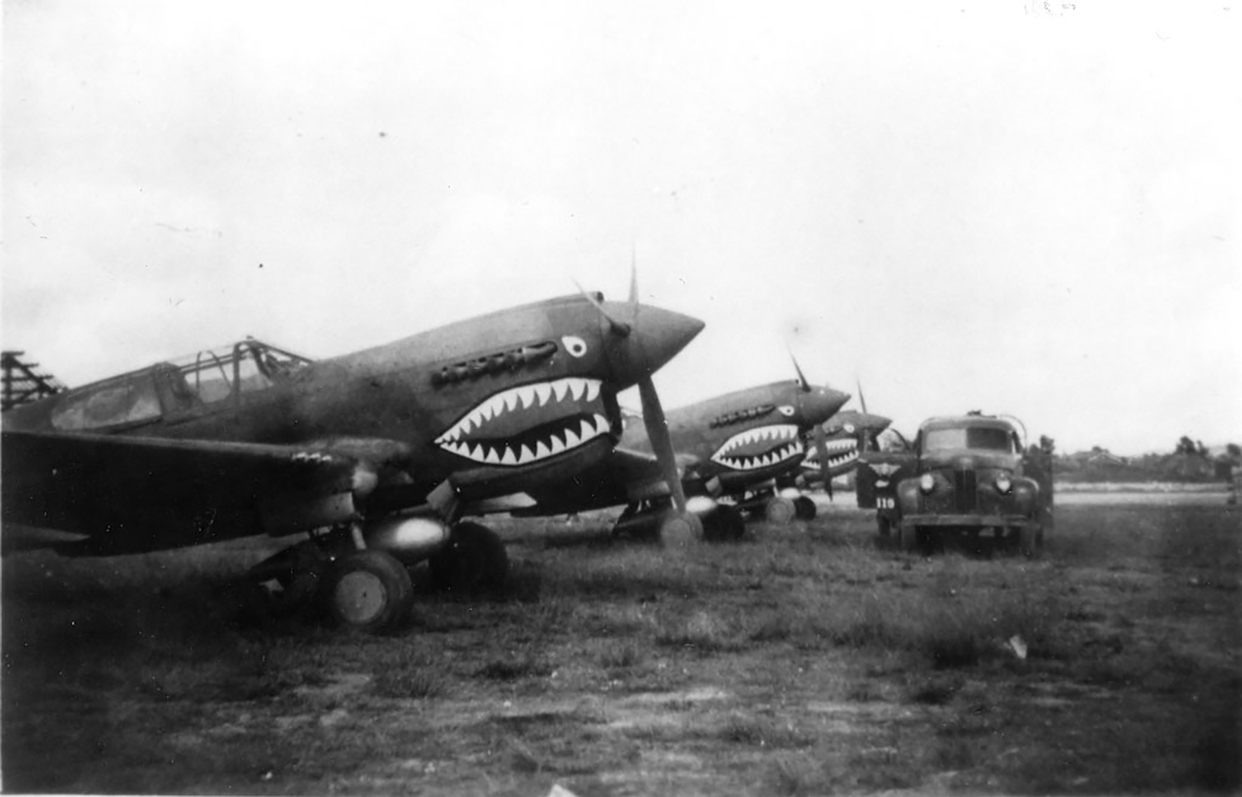 Curtiss P-40K Warhawk 23FG76FS lined up for refueling Kunming China 1942 01
