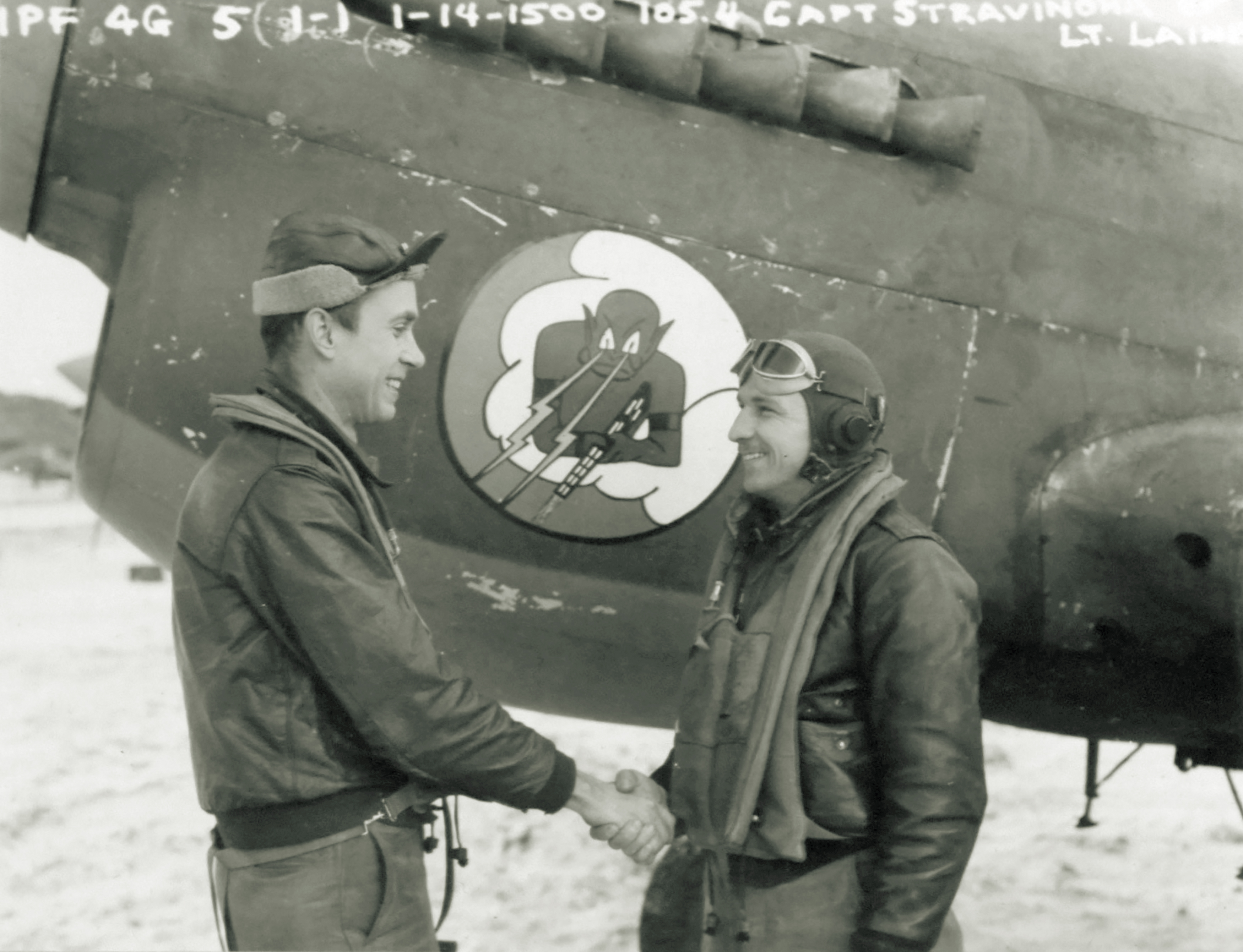 Aircrew 11AF 343FG18FS with Capt John Stravinoha left and Lt Hugo O Laine Adak Alaska 1942 NA1070