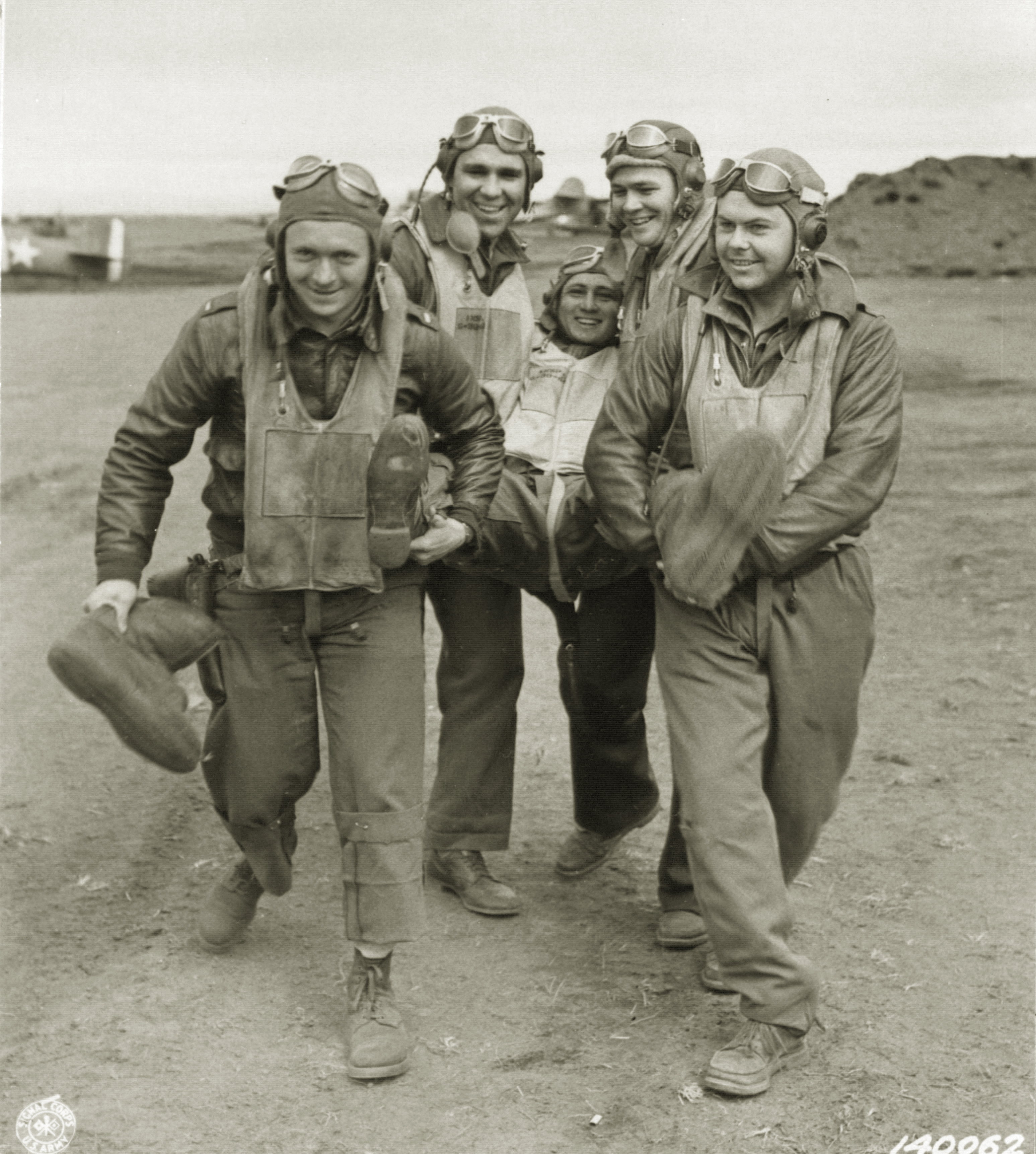 Aircrew 11AF 343rd Fighter Group P-40 Warhawk pilots during the Aleutian campaign Alaska 1943 NA001