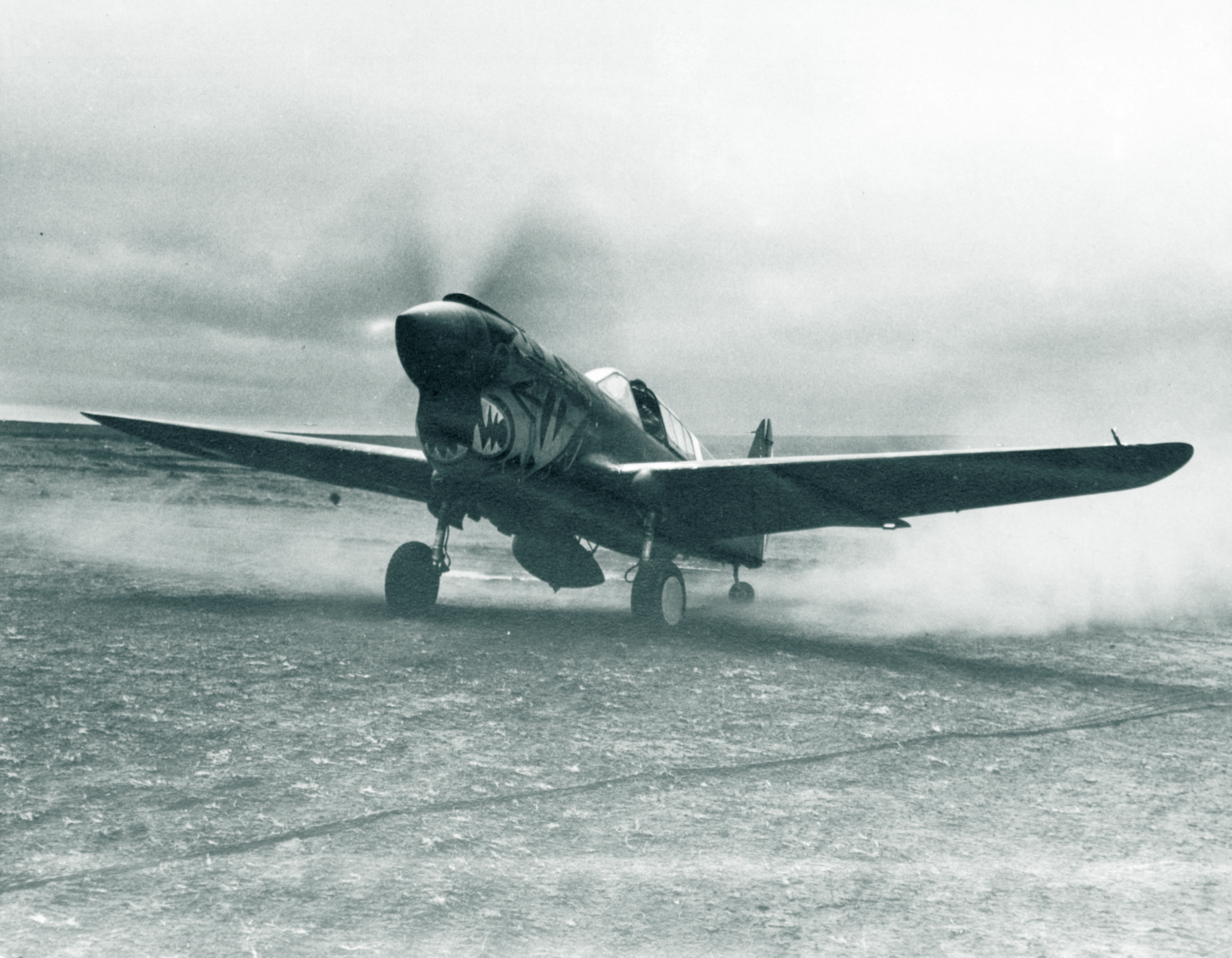 Curtiss P-40E Warhawk 343FG11FS Aleutian Tigers just prior to take off Aleutian Islands 1942 NA1067