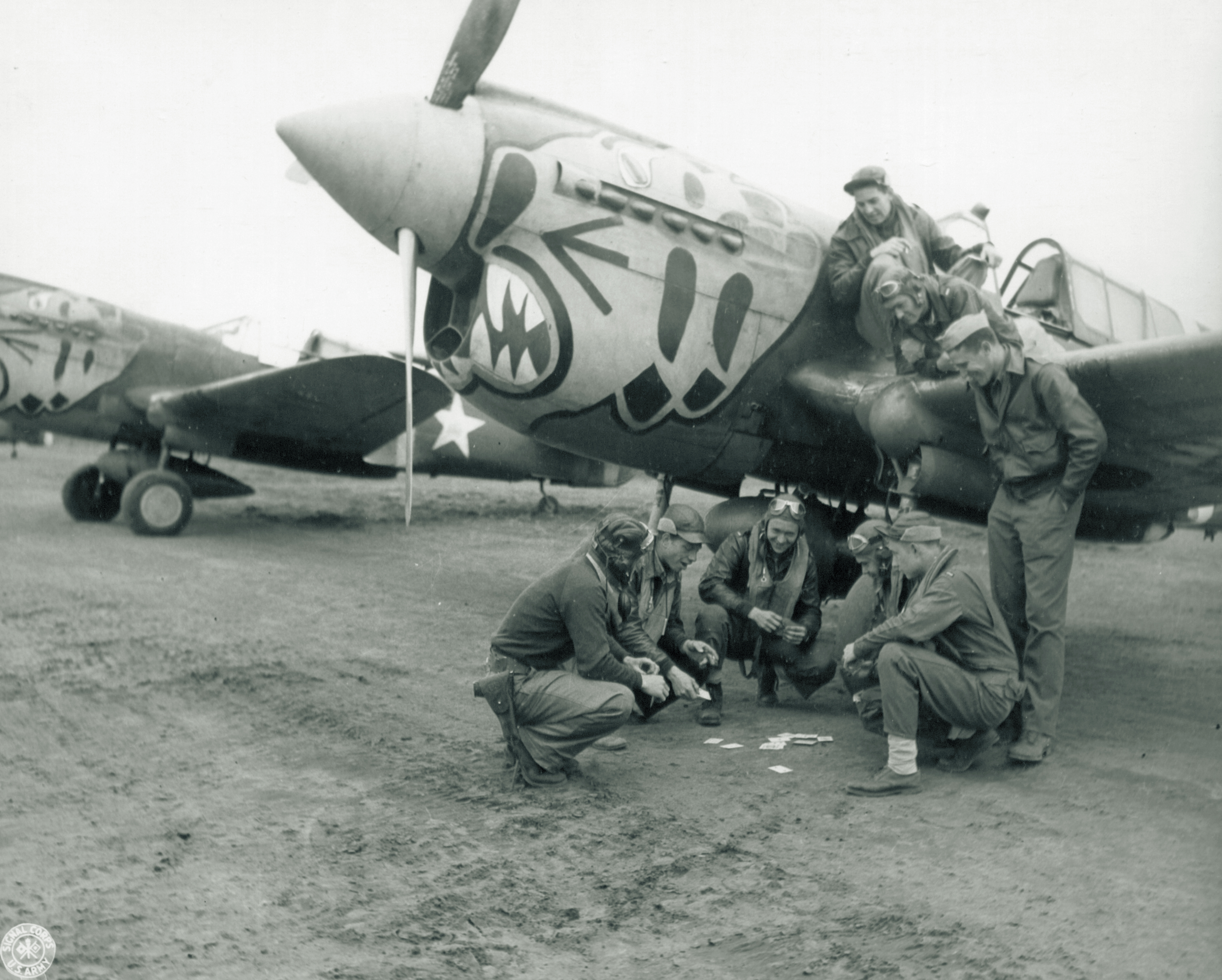 Curtiss P-40E Warhawk 343FG11FS Aleutian Tigers pilots play cards whilst waiting for clearance Aleutian Islands 1942 NA242