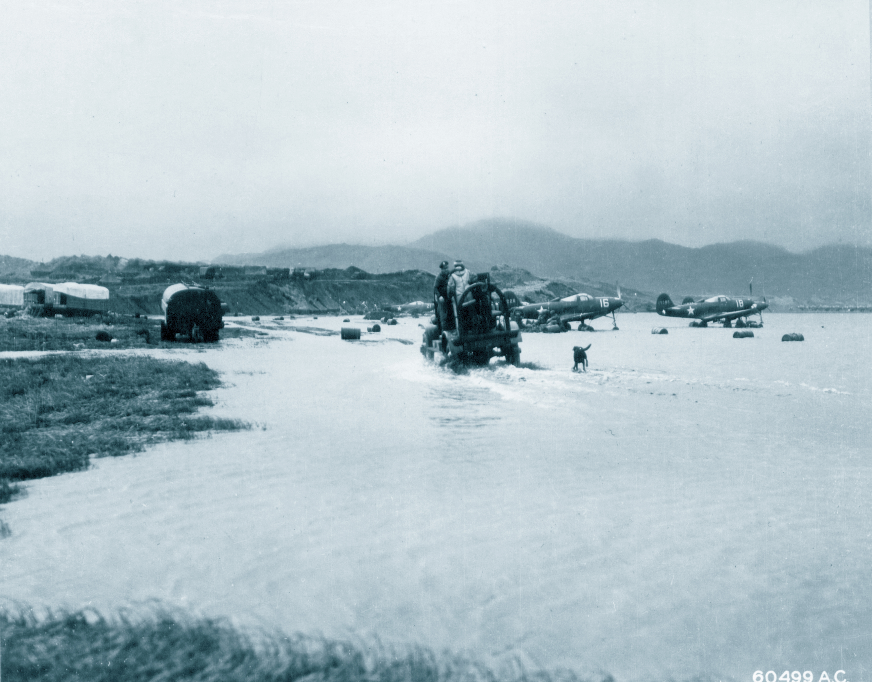 USAAF 41 7305 Bell P 39F Airacobra 54FG White 18 after heavy rains at Longview Adak Island 7th Aug 1942 NA076