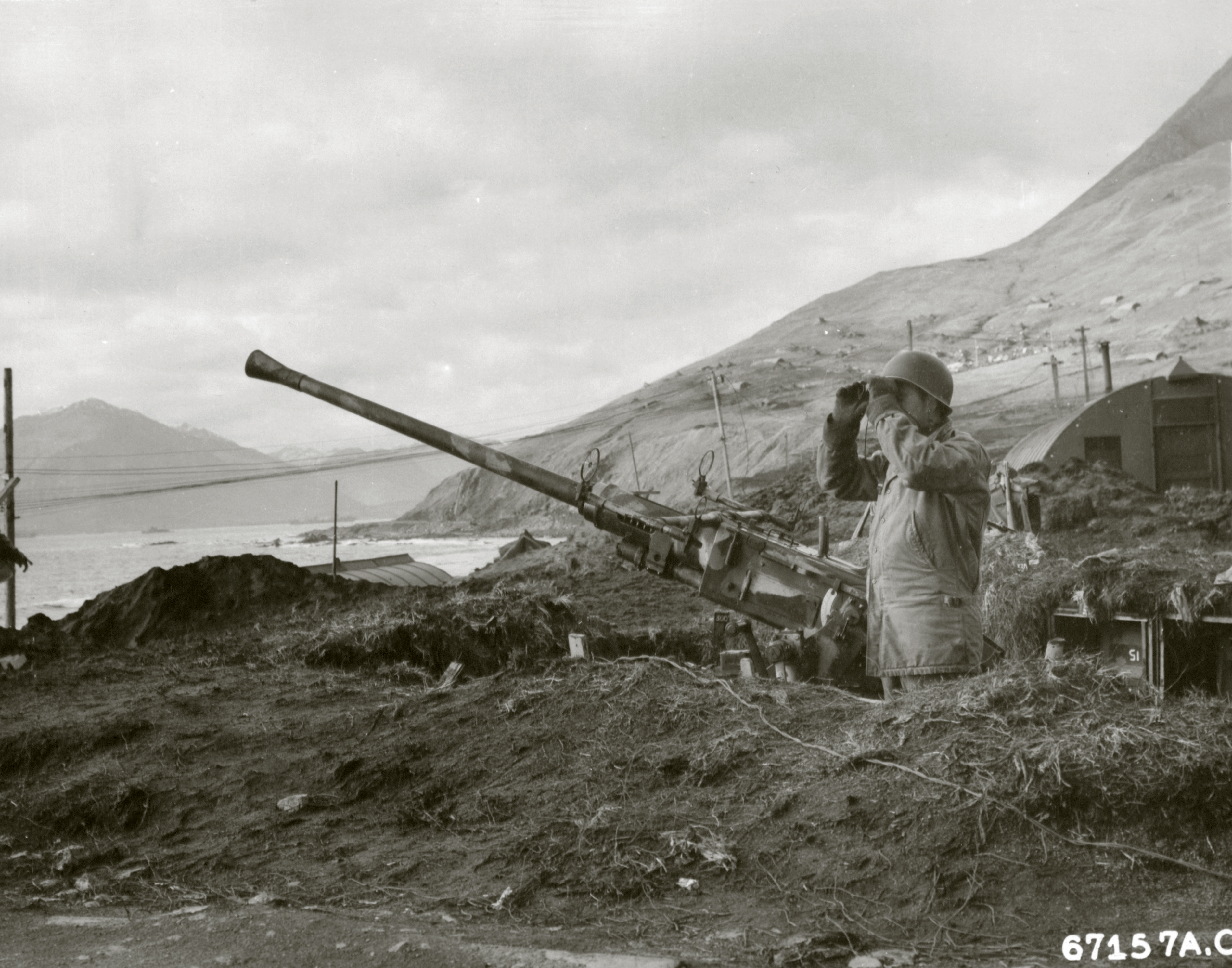 USAAF Alexai Point Airbase Attu Aleutian Islands Alaska ground defenses 40mm gun position 5th Oct 1943 NA1138