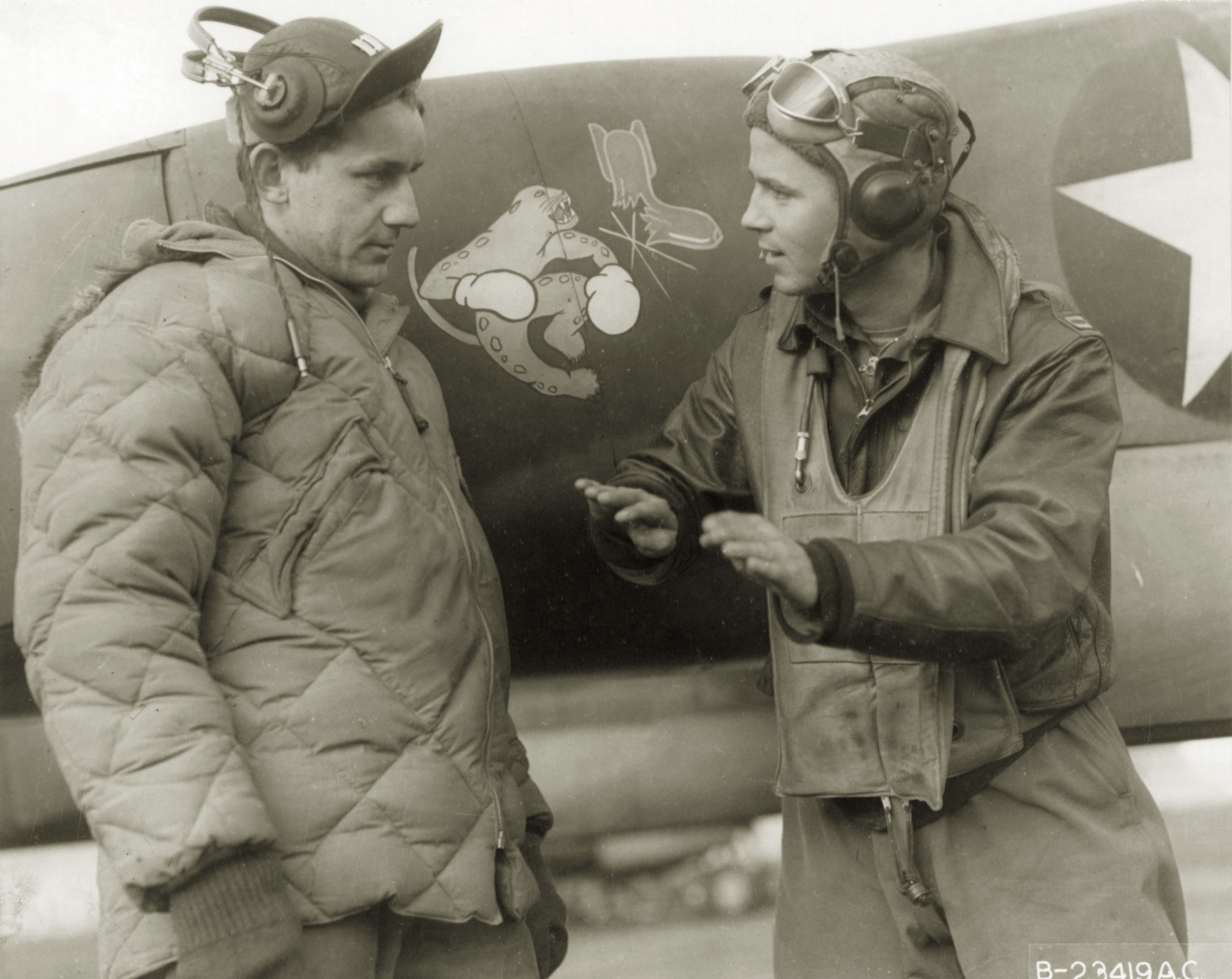 USAAF P 38E Lightning 343FG54FS with Capt Millard and Capt Hustead and 54FS emblem Aleutian Islands 1943 NA224