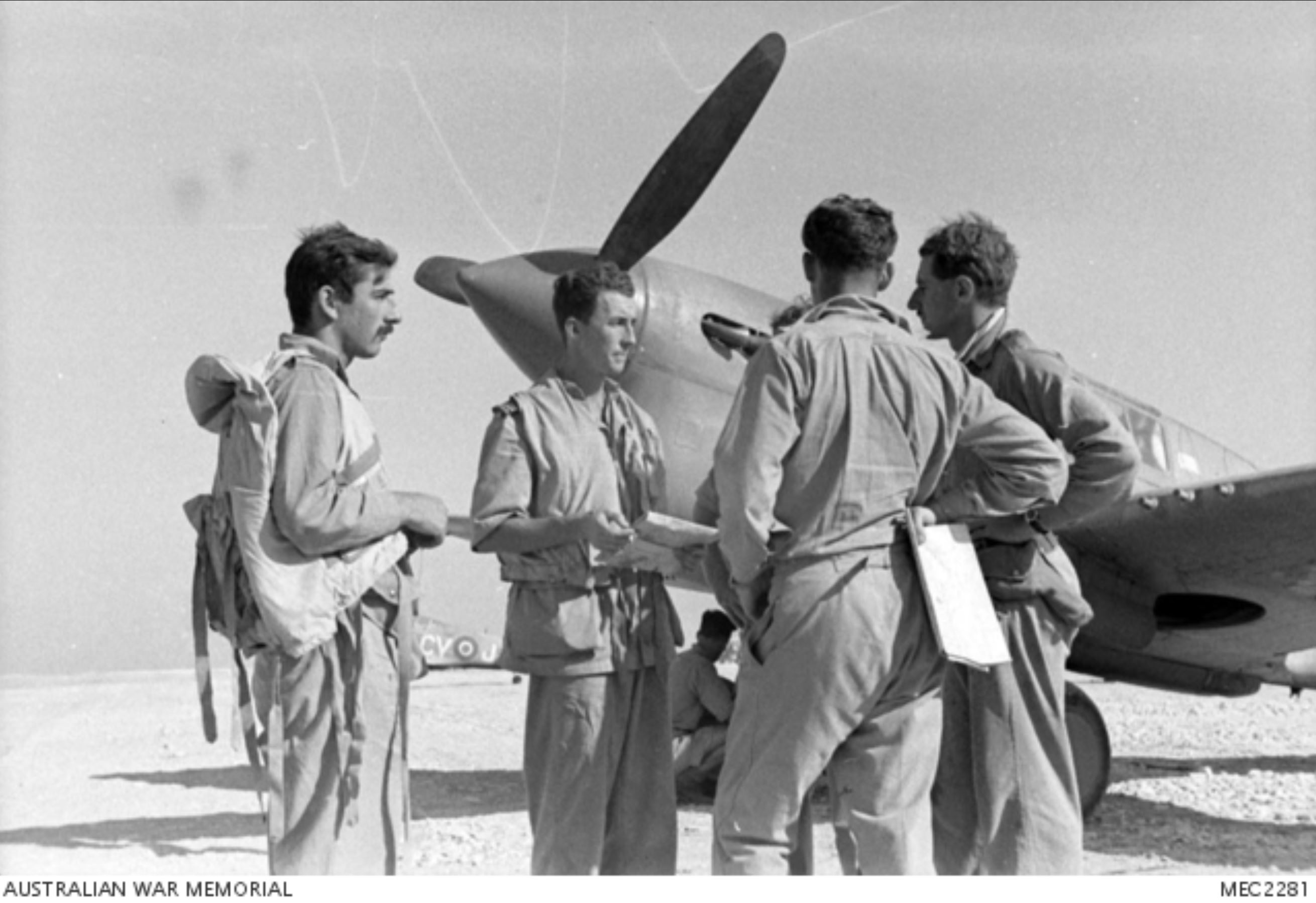 Aircrew RAAF 3Sqn SqnLdr RNB Stevens at Malta July 1943 AWM MEC2281