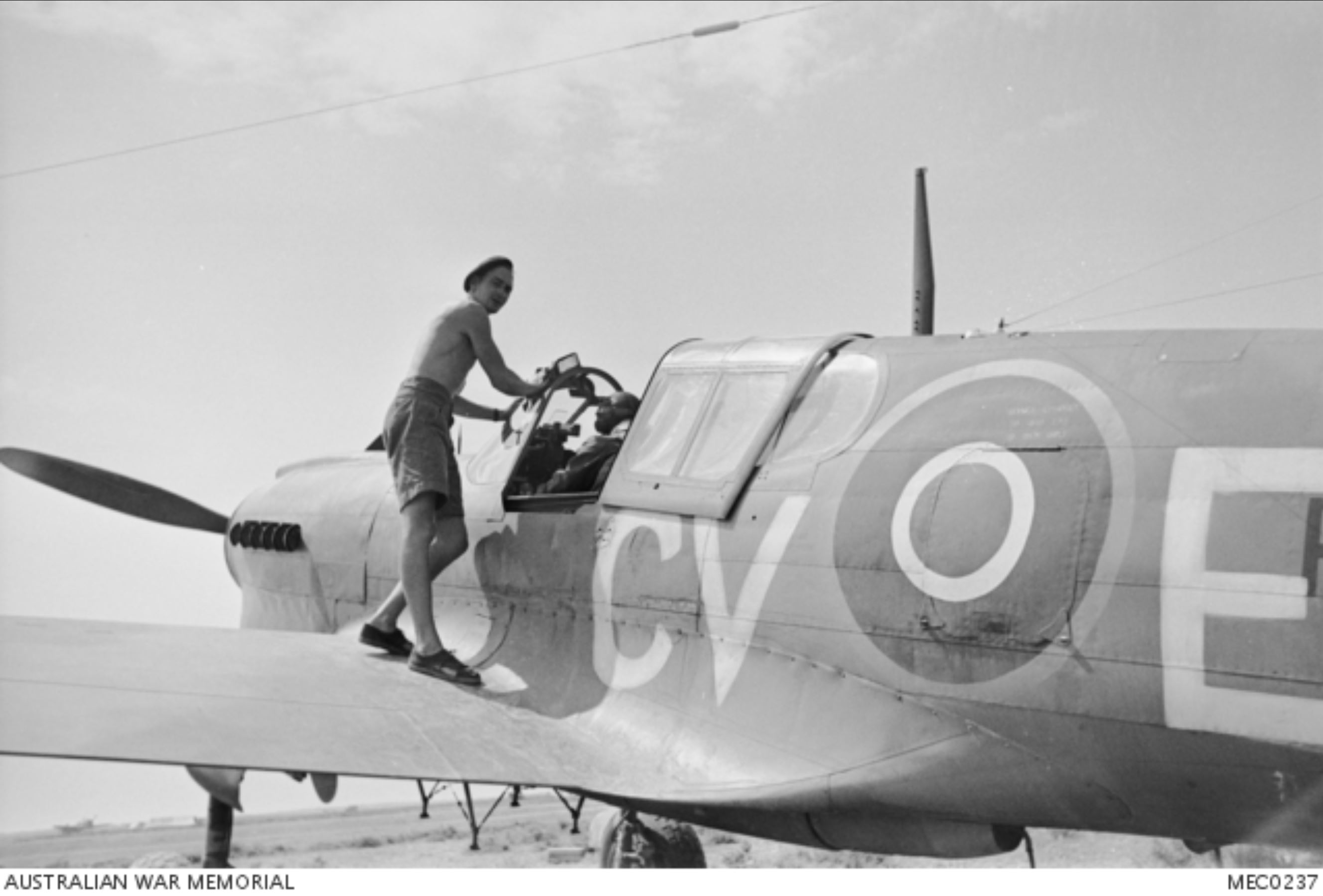 Curtiss P 40E Kittyhawk RAAF 3Sqn CVE at Kairouan Tunisia May 1943 AWM MEC0237