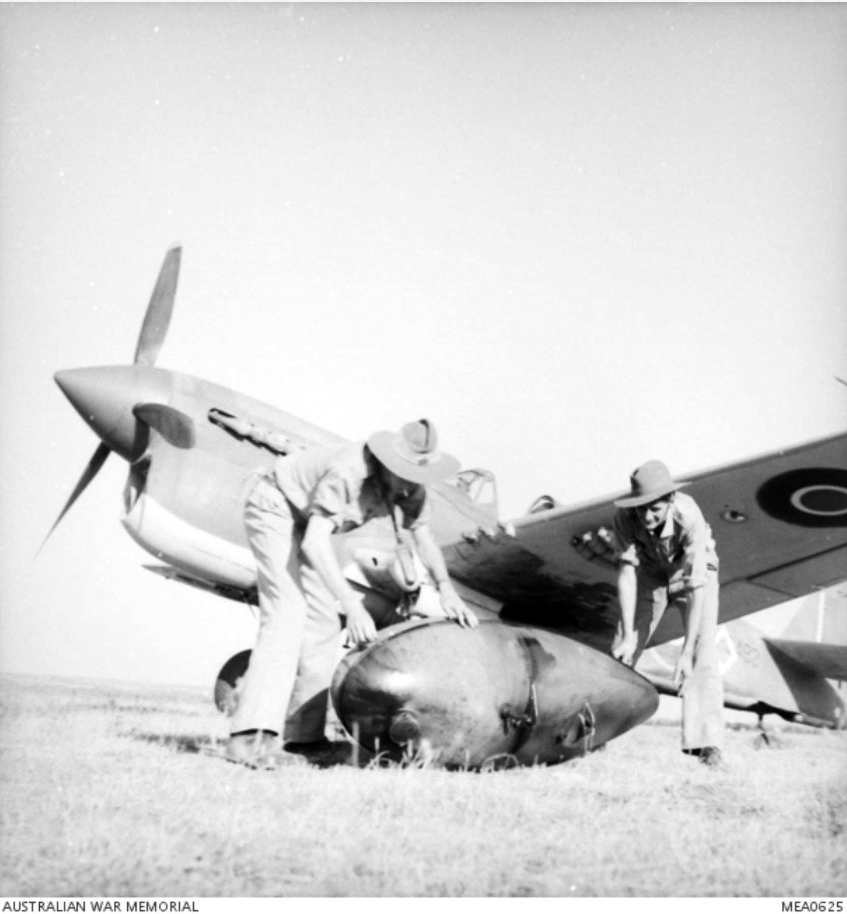 Curtiss P 40F Kittyhawk RAAF 3Sqn CV diamond FS482 at Grottaglie Airfield Italy Sep 1943 AWM MEA0625