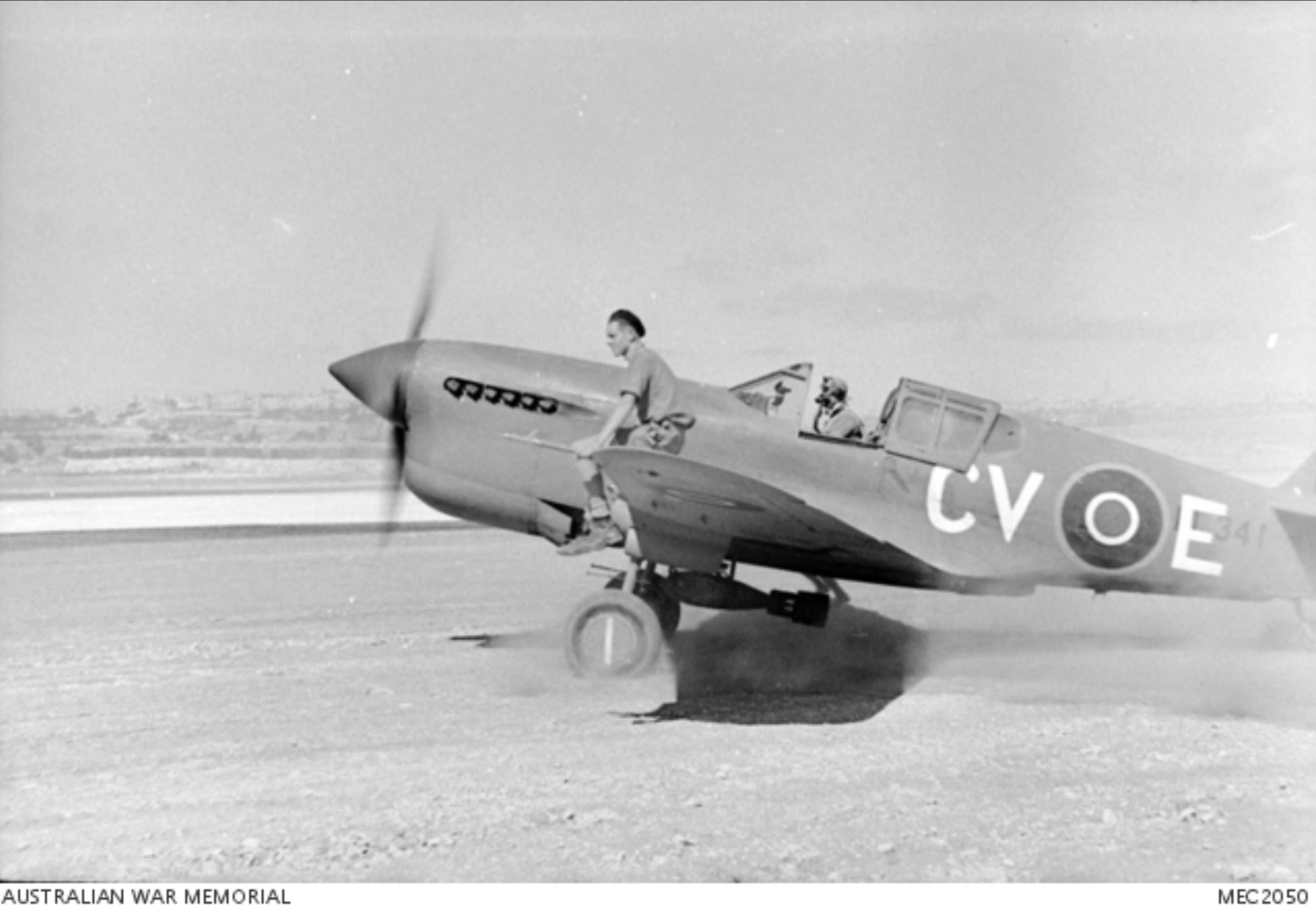 Curtiss P 40F Kittyhawk RAAF 3Sqn CVE FL341 prior to operations over Sicily July 1943 AWM MEC2050