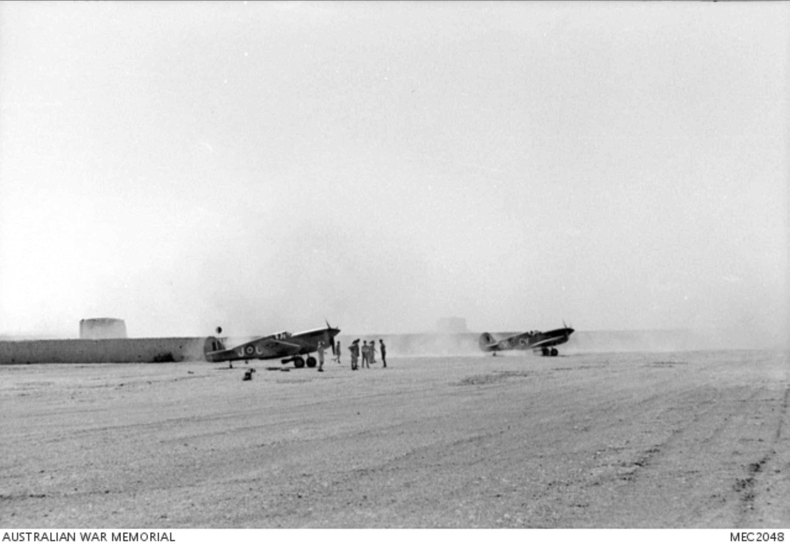 Curtiss P-40F Kittyhawk RAAF 3Sqn CVJ and CVY prior to operations over Sicily July 1943 AWM MEC2048