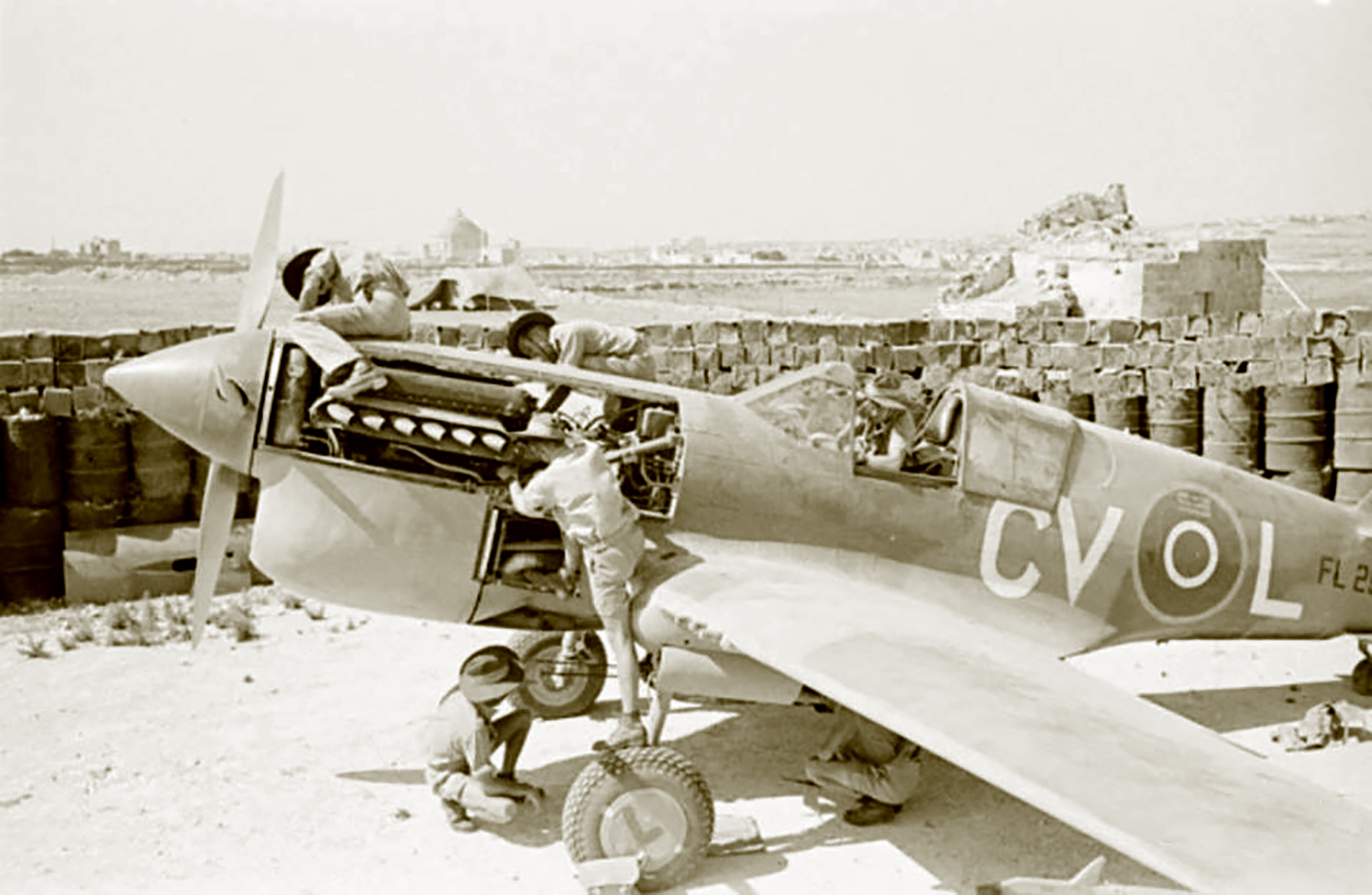 Curtiss P 40F Kittyhawk RAAF 3Sqn CVL FL2xx being serviced at Ta Kali Malta Jul 1943 AWM MEC2006x