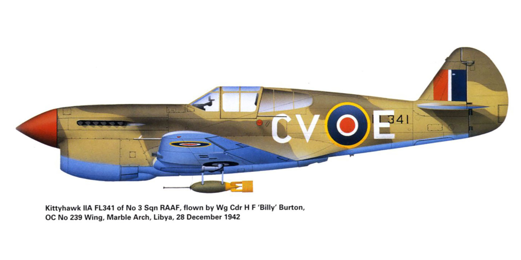 USAAF 41 14015 P-40F Kittyhawk RAAF 3Sqn CVE WgCdr HF Billy Burton FL341 Libya 28th Dec 1942 0A