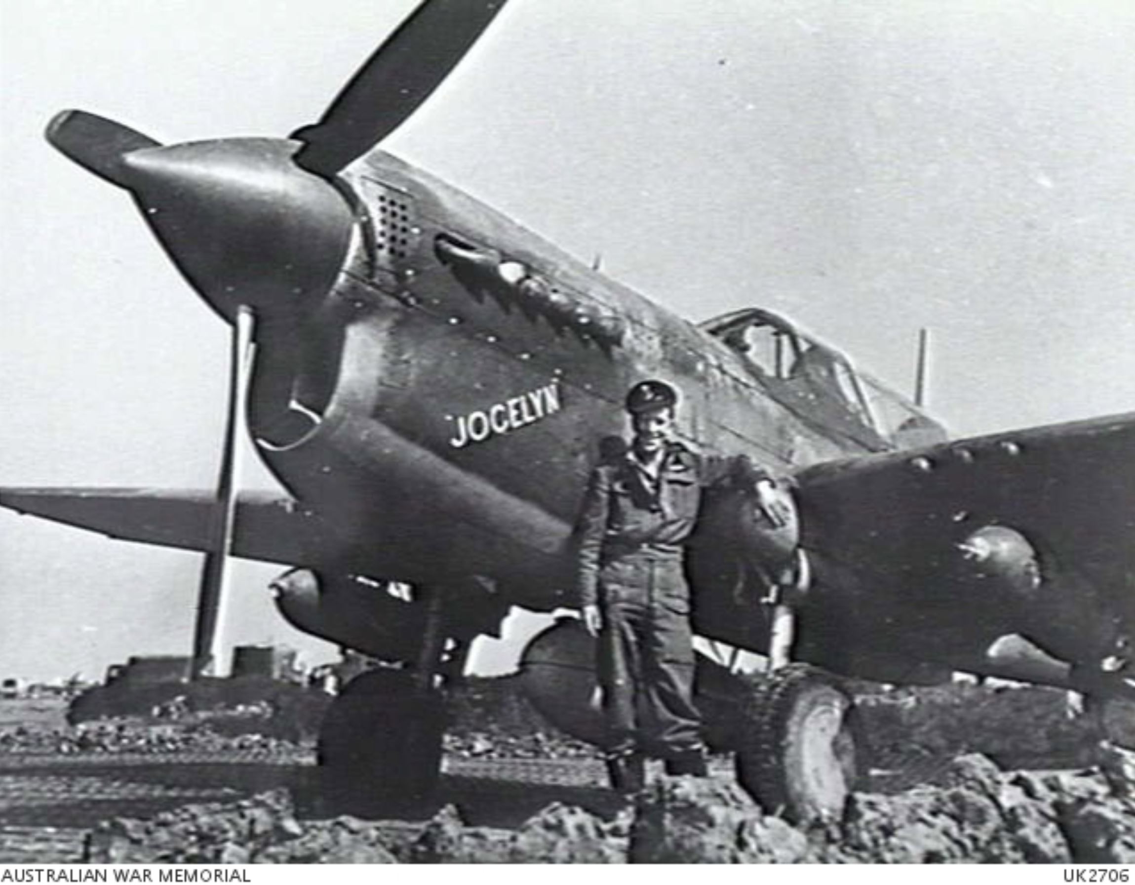 Curtiss P 40N Kittyhawk RAAF 450Sqn OKx PO Garry Blumer with Jocelyn fully ladened Italy 1945 AWM UK2706