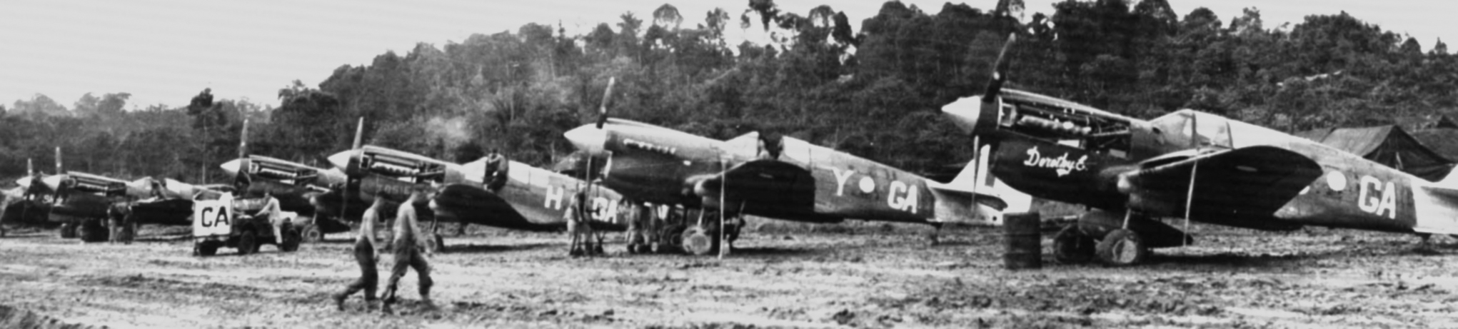 Curtiss P 40N Kittyhawk RAAF 75sqn Line Up at Tarakan Borneo 28th Jun 1945 AWM 01