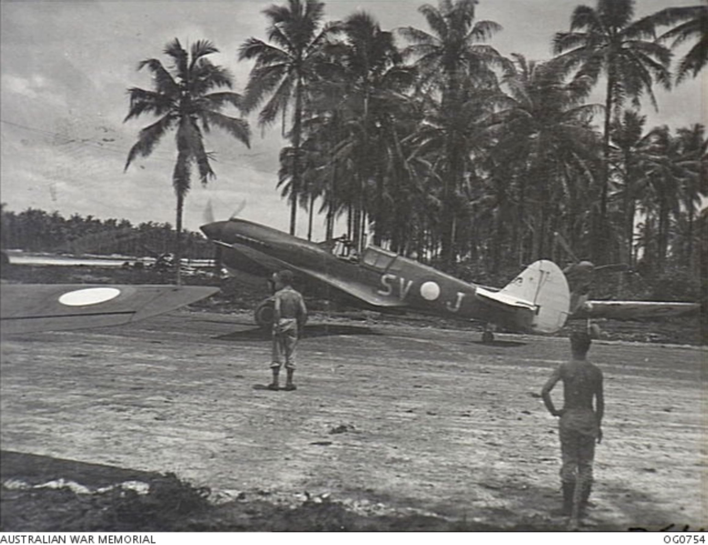Curtiss P 40N Kittyhawk RAAF 76Sqn SVJ at Momote Los Negros Admiralty Islands 8th Mar 1944 AWM OG0754