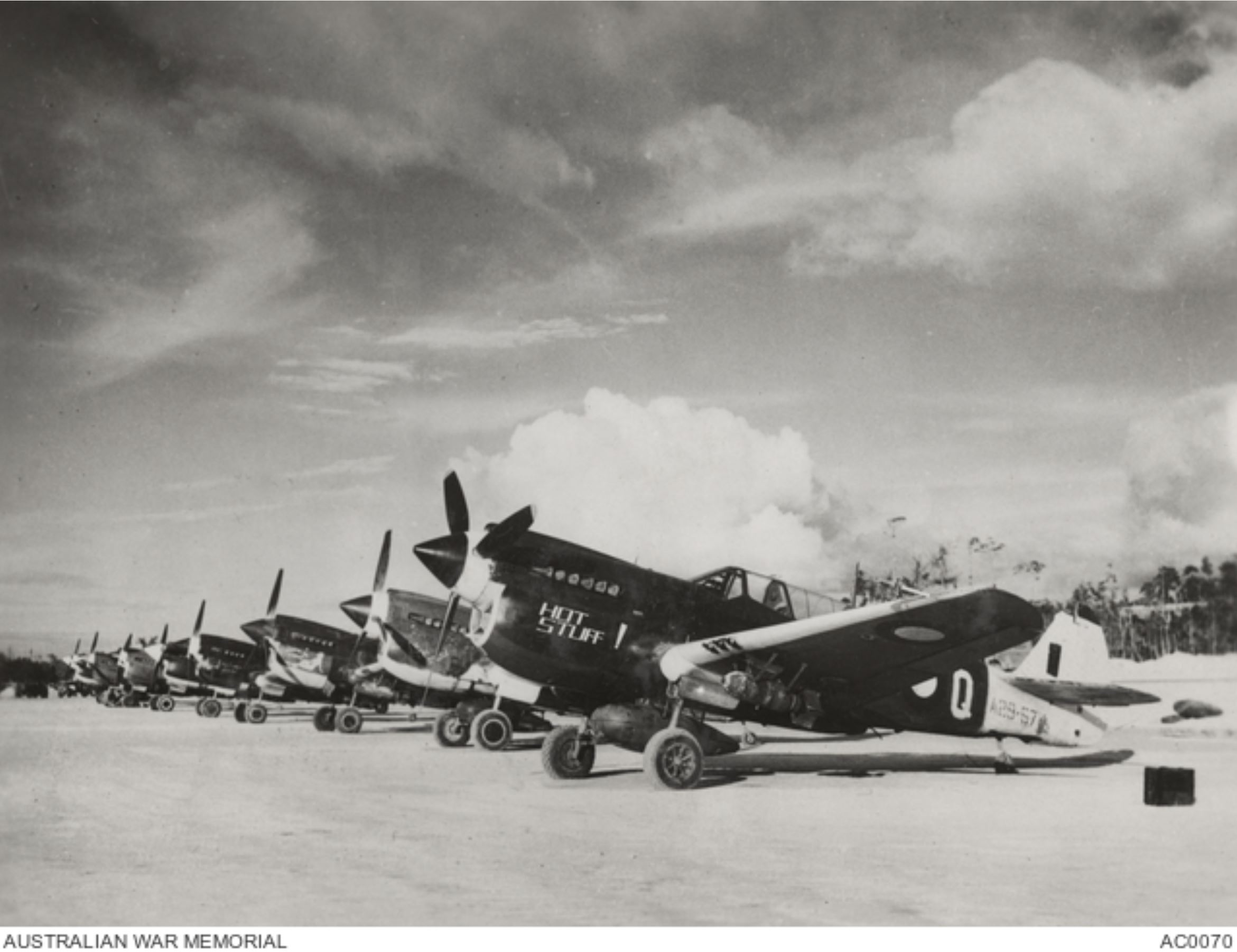 Curtiss P-40N Kittyhawk RAAF 78Sqn HUQ Hot Stuff A29 574 at Noemfoor Island DNG 1944 AWM AC0070