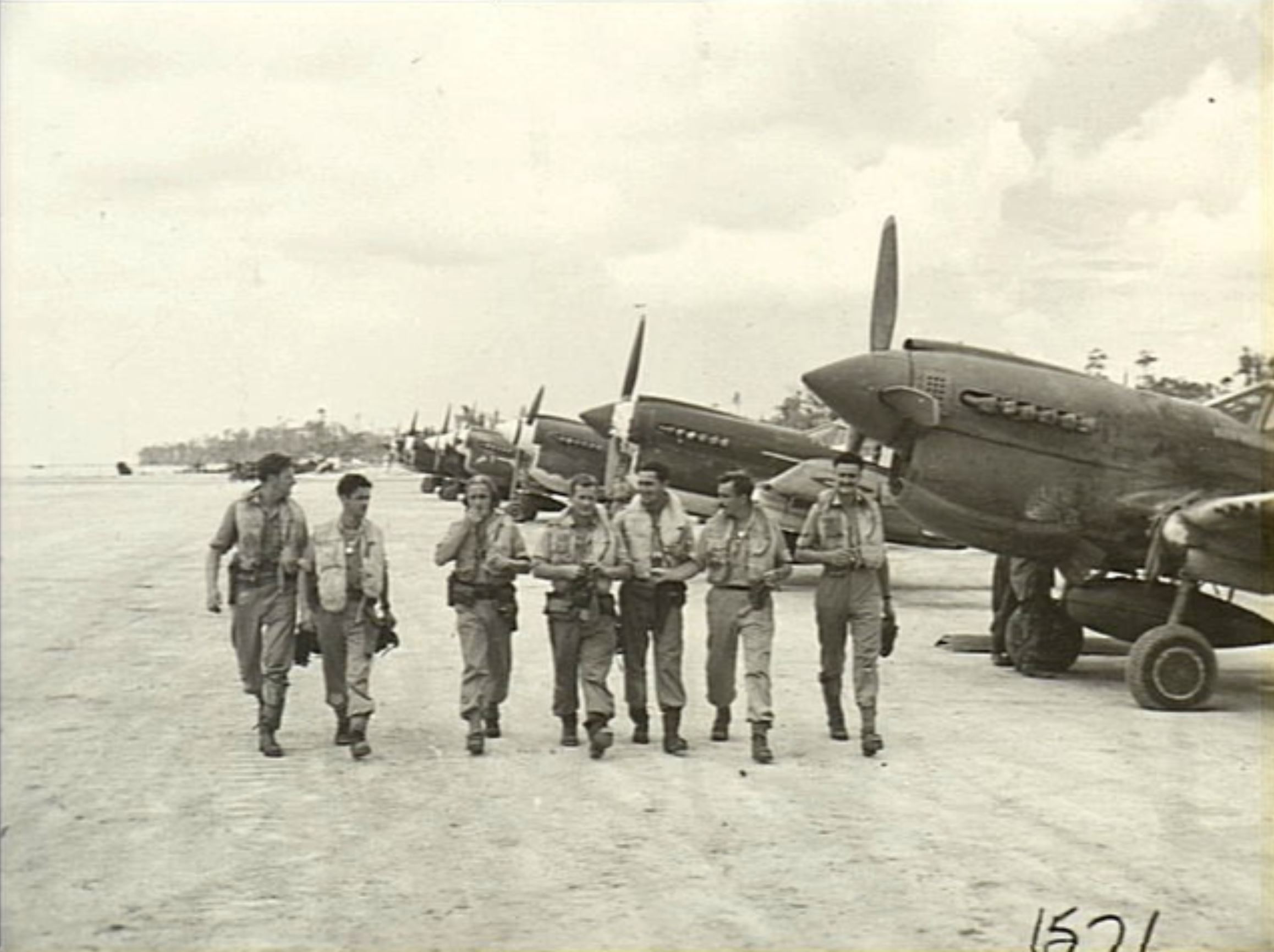 Curtiss P-40N Kittyhawk RAAF 78Sqn pilots returning from their mission Noemfoor DNG 28th Aug 1944 AWM OG1571