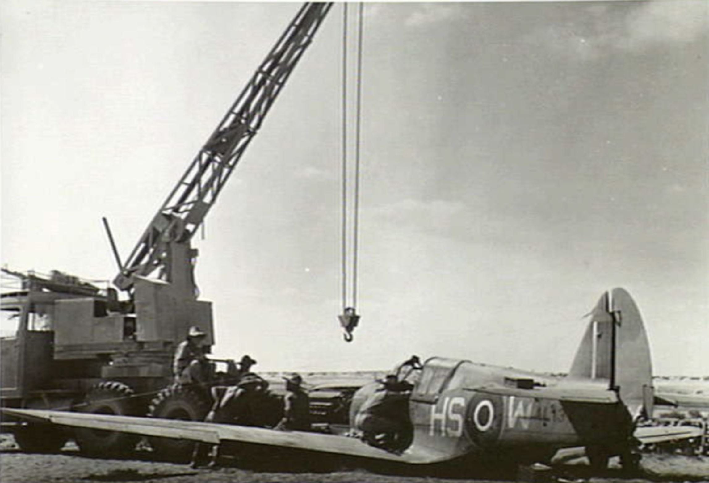 Curtiss P 40E Kittyhawk RAF 260Sqn HSW AL134 force landed after combat Egypt 14th Aug 1942 AWM 024841