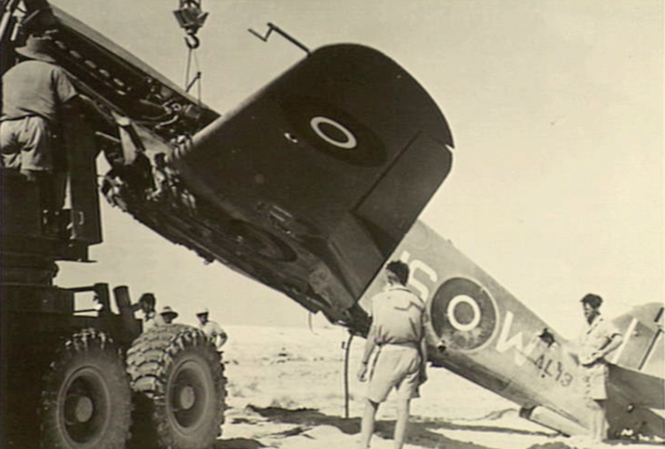 Curtiss P 40E Kittyhawk RAF 260Sqn HSW AL134 force landed after combat Egypt 14th Aug 1942 AWM 024842