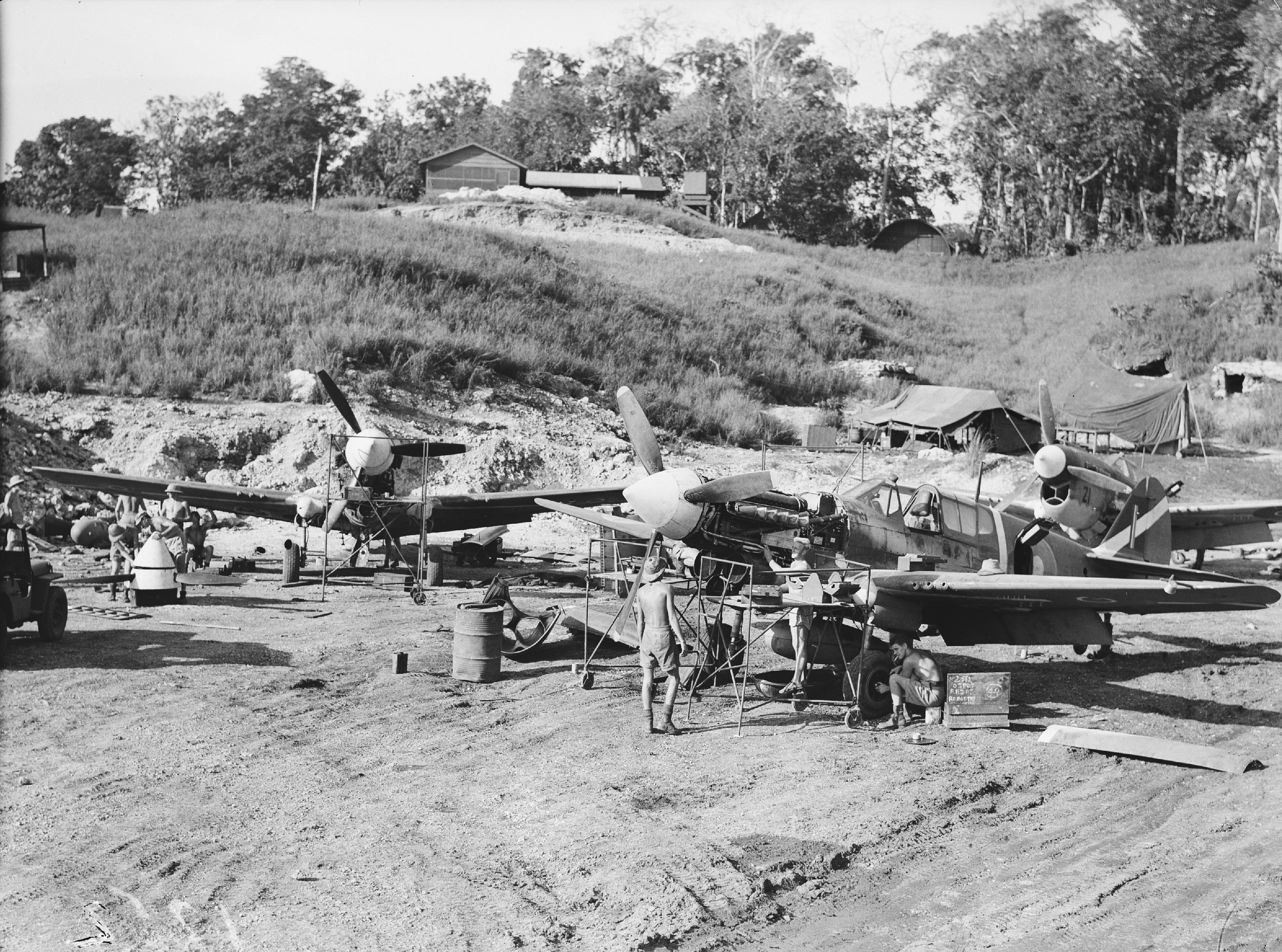 Curtiss P-40 Kittyhawk RNZAF 14Sqn 1 Maintenance Unit Black 21 under maintenance Kukum Guadalcanal 01