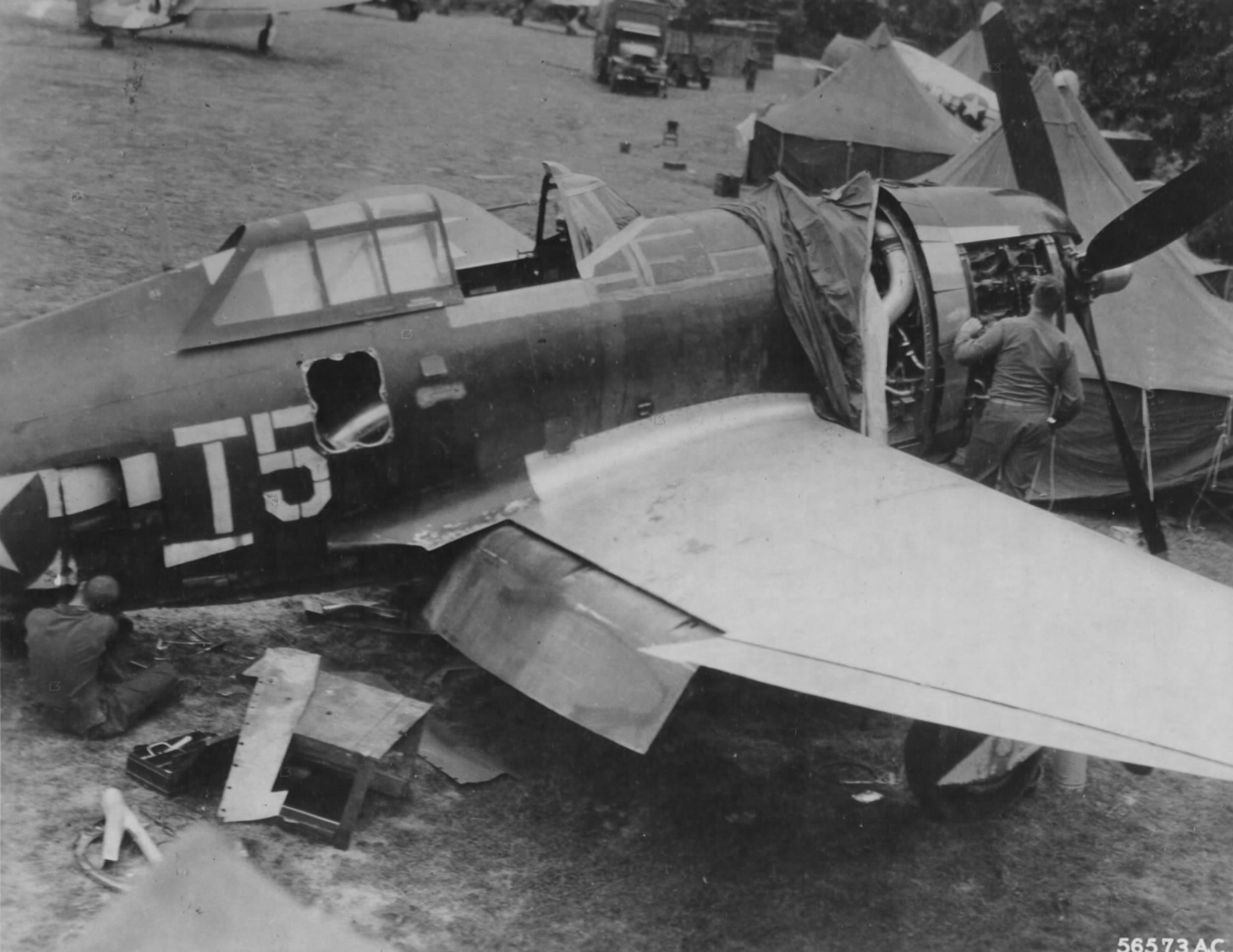 P-47D Thunderbolt 50FG10FS T5 being fitted with a new wing France 15th Mar 1945-01
