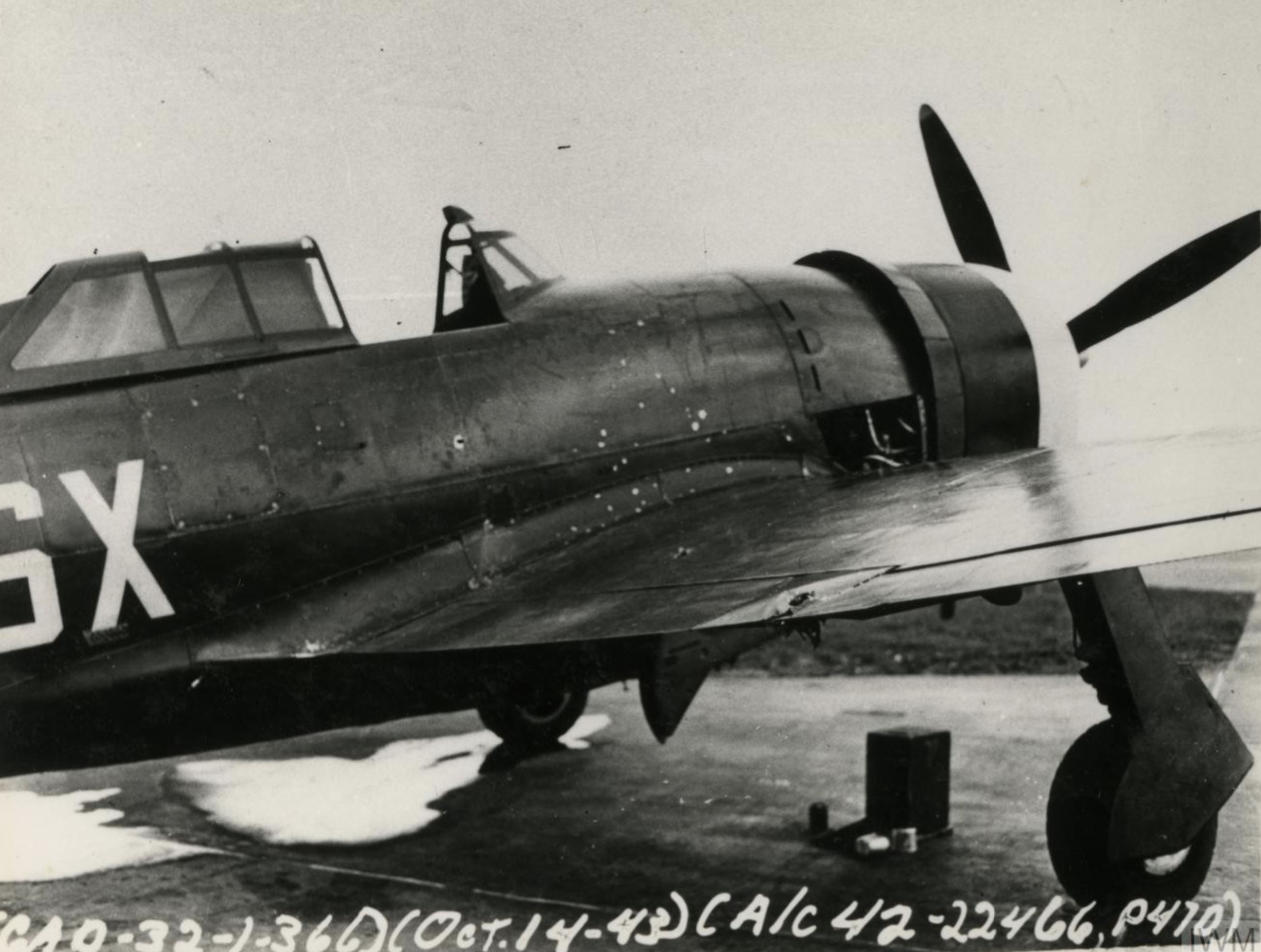 42-22482 P-47D Thunderbolt 8AF 353FG352FS SXM Stinky Poo (L R) Capt Gordon S Burlingame crash landed 14th Oct 1943-FRE12174