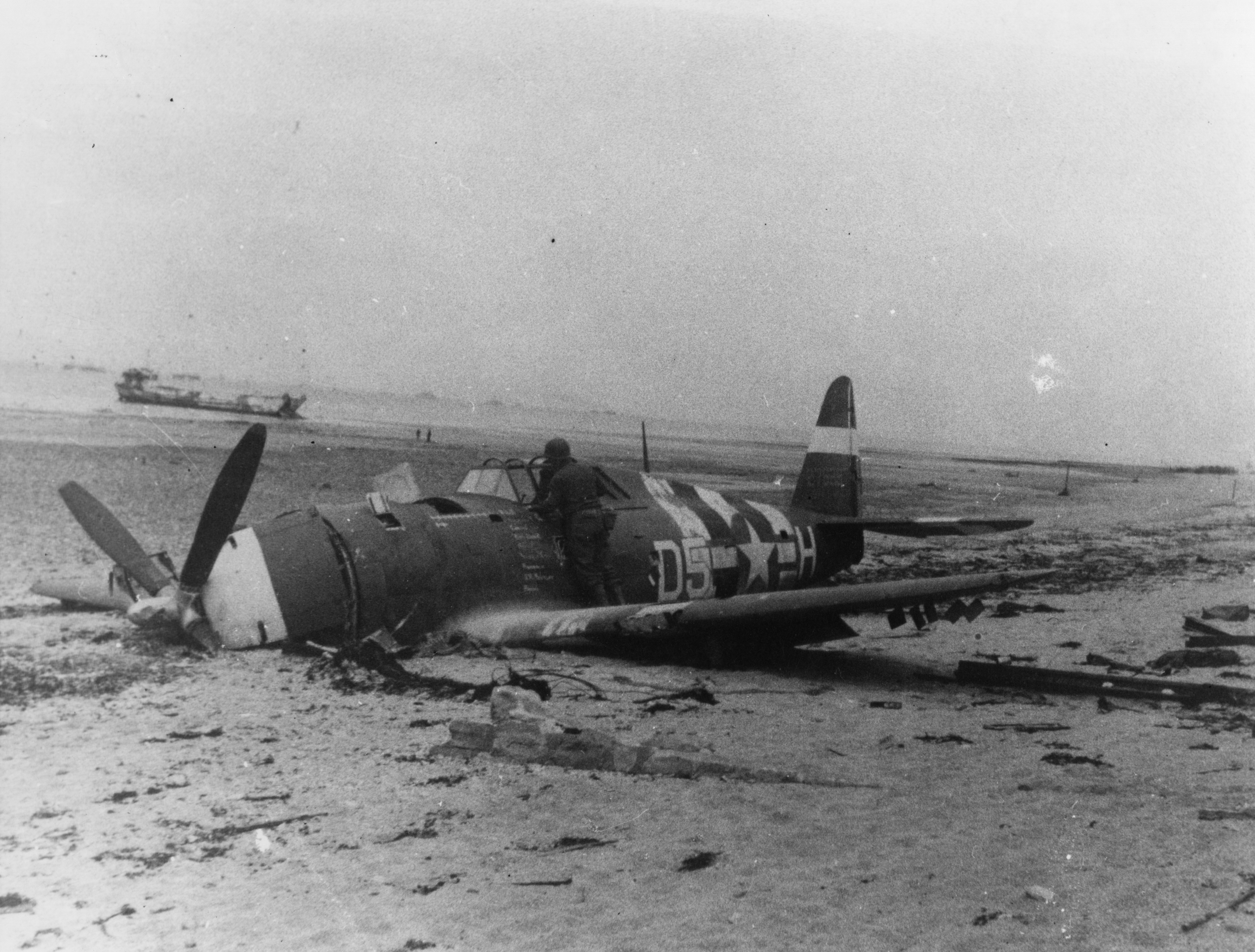 42-76297 P-47D Thunderbolt 9AF 365FG386FS D5H shot down and crashed landed Normandy Beach June 1944-02