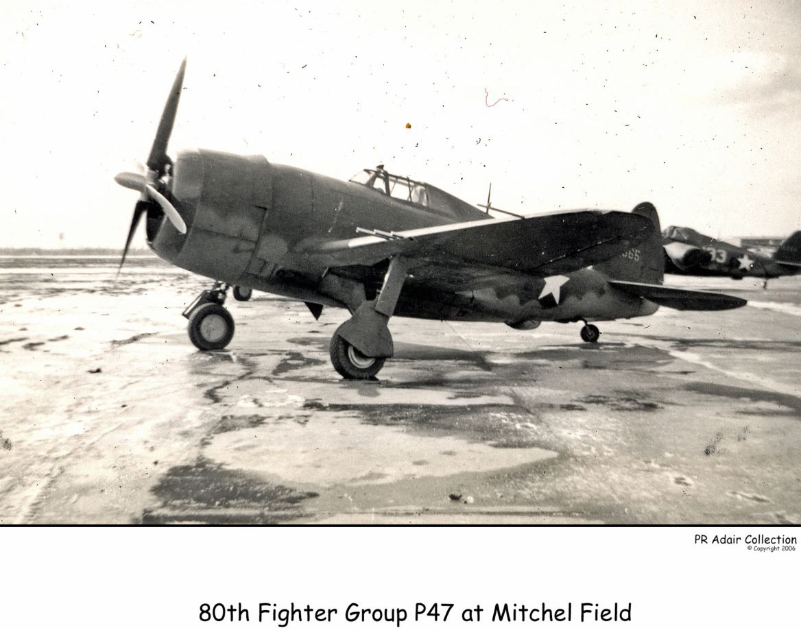 Beginning in January 1943, Thunderbolt fighters were sent to the joint Army Air Forces - civilian Millville Airport in Millville, New Jersey in order to train civilian and military pilots.