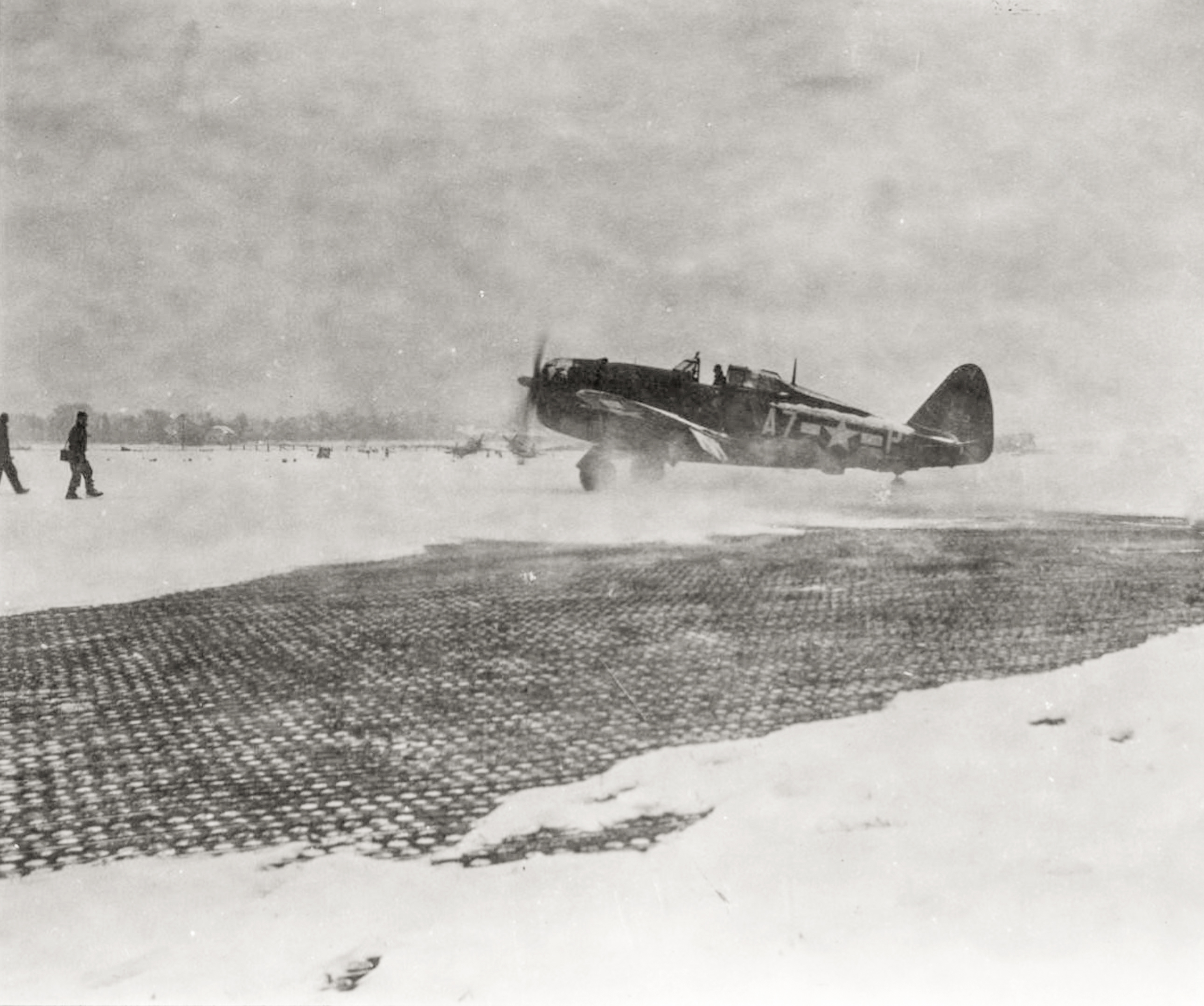 USAAF Republic P-47D Thunderbolt 9AF 368FG395FS A7P prepares for take off in snow FRE9586