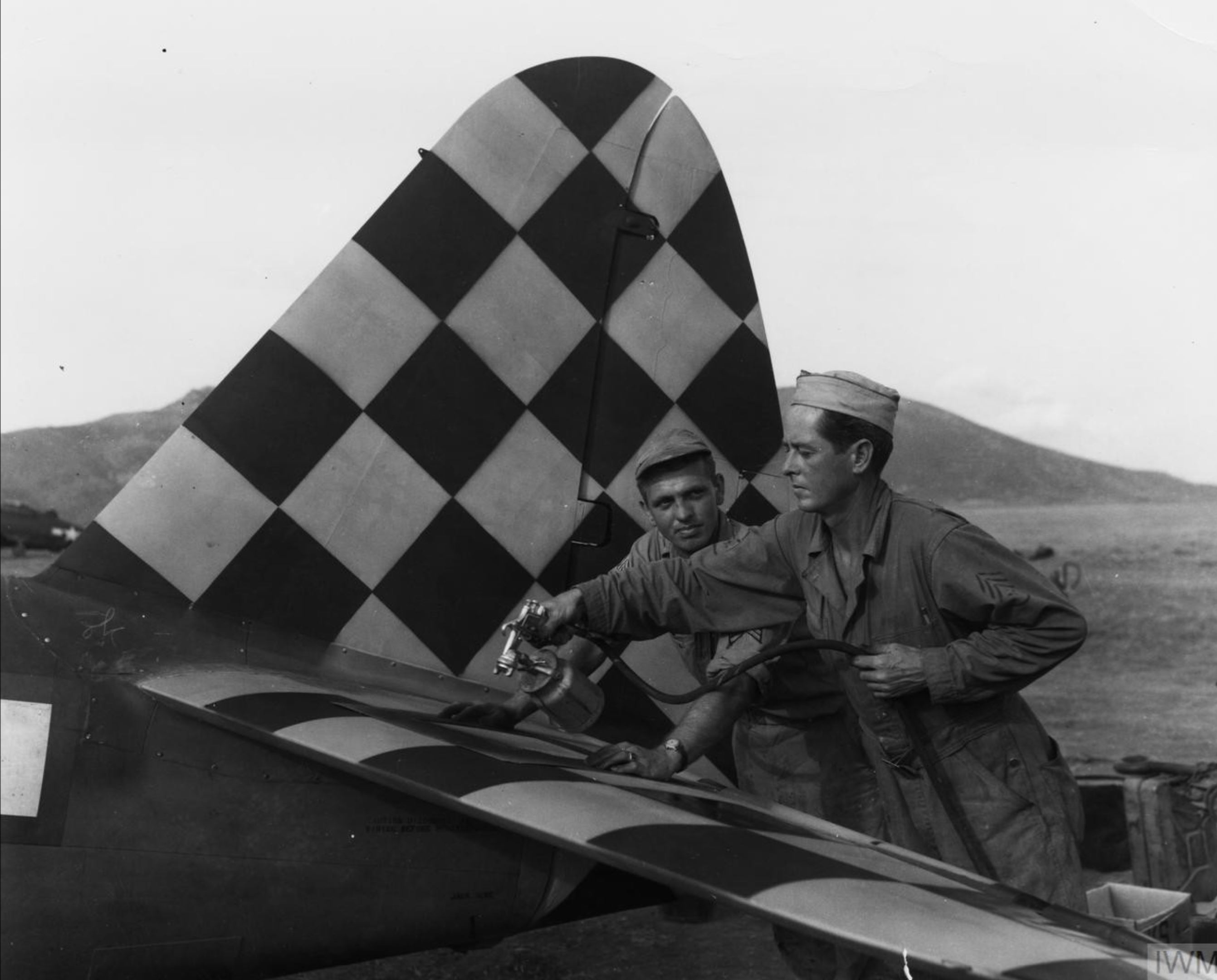 USAAF Republic P-47D Thunderbolt 15AF 325FG having the checker board tail painted FRE9406