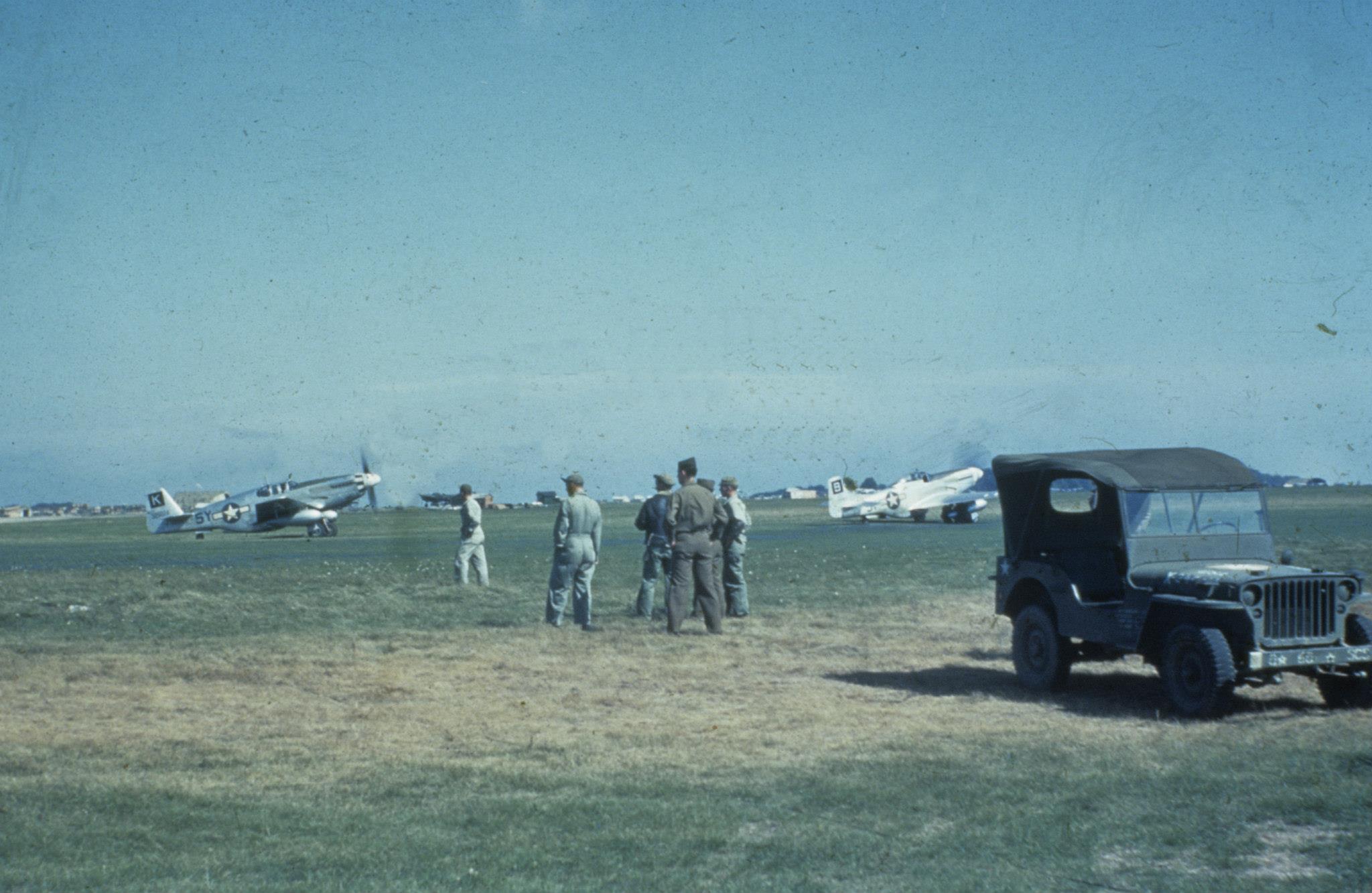 P-51B Mustang 364FG384FS 5YK and P-51D 5YB take off at Honington 01