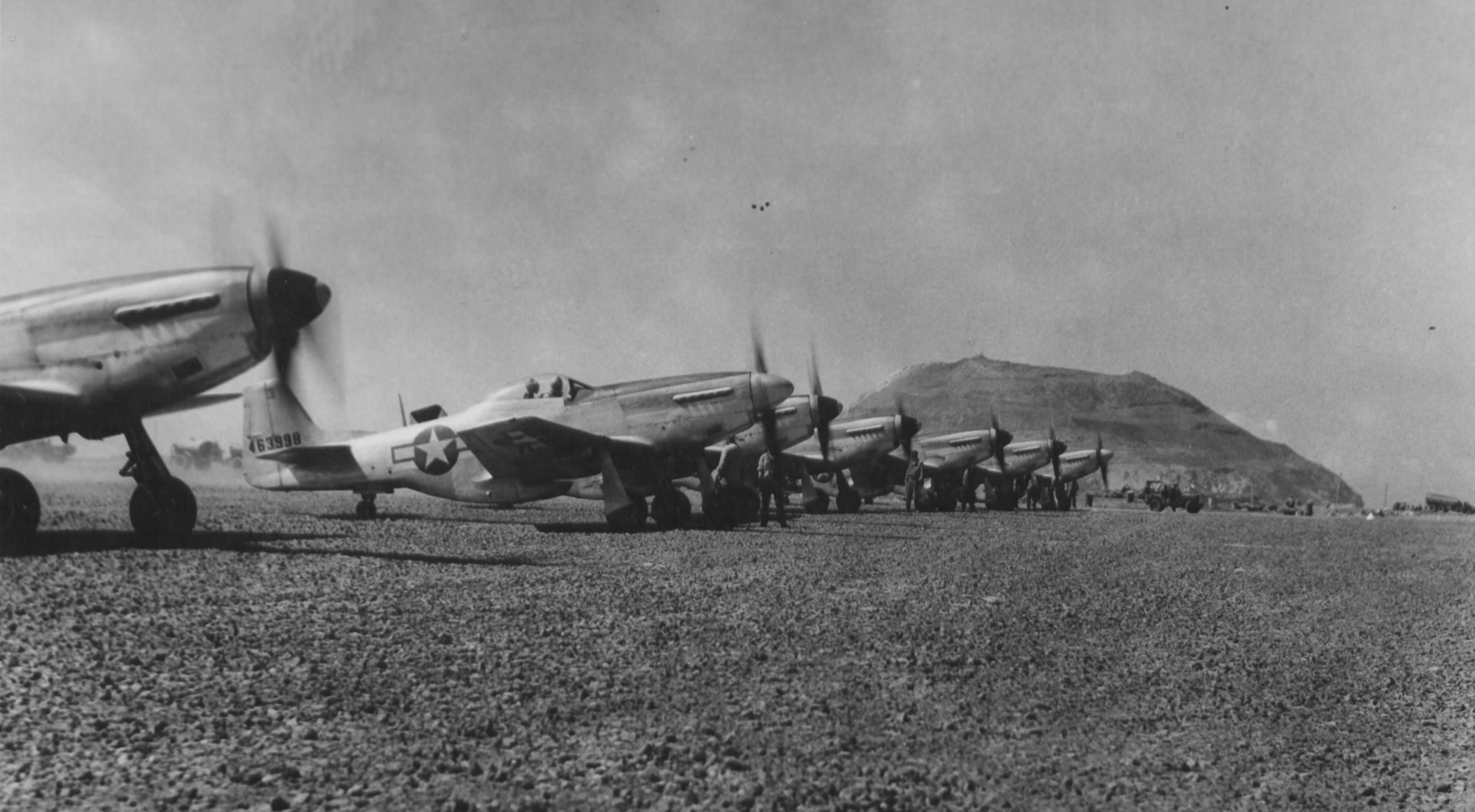 44 63998 P-51D Mustang 7AF 15FG45FS taxiing at Iwo Jima Apr 1945 01