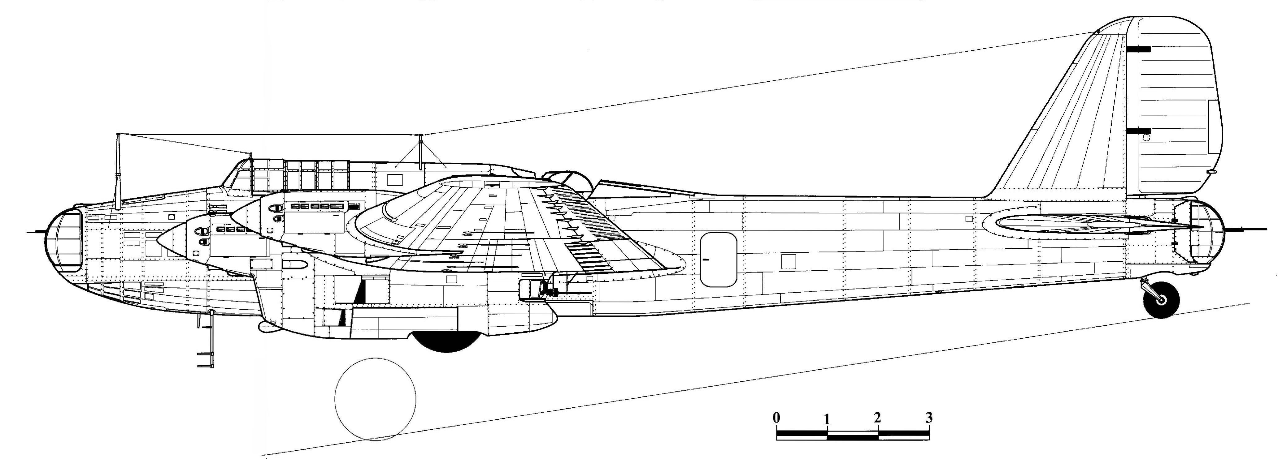 Blue print diagram of the Petlyakov TB 7 (Pe 8) 4AM 35A Blue Prints in 1 72 Scale 0B