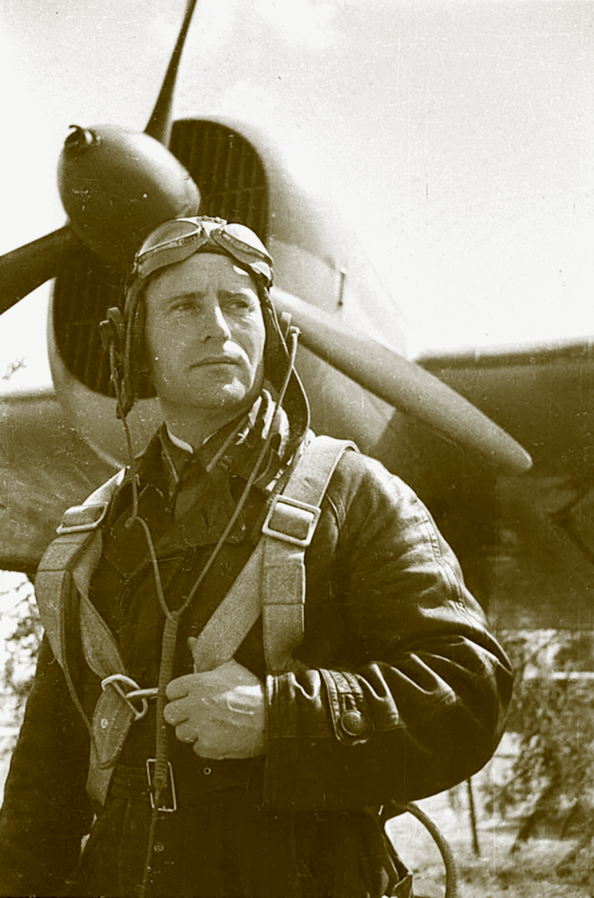 Aircrew Soviet pilot Maj Ivan Polbin near his SB 2 01
