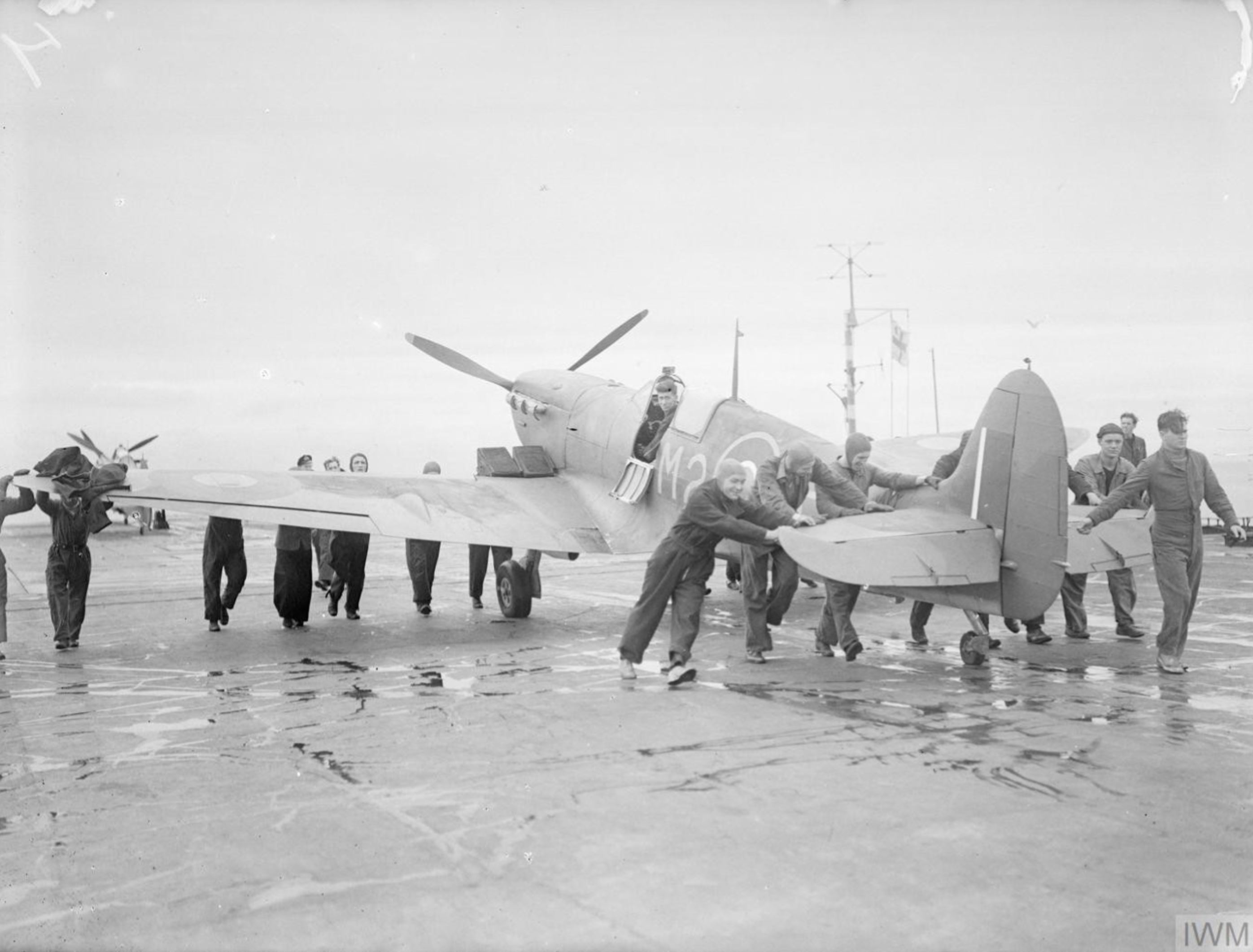 Fleet Air Arm 801NAS Seafire coded M2x after landing aboard HMS Argus 15 17th Aug 1943 IWM A18866